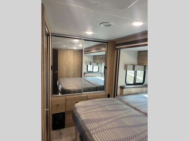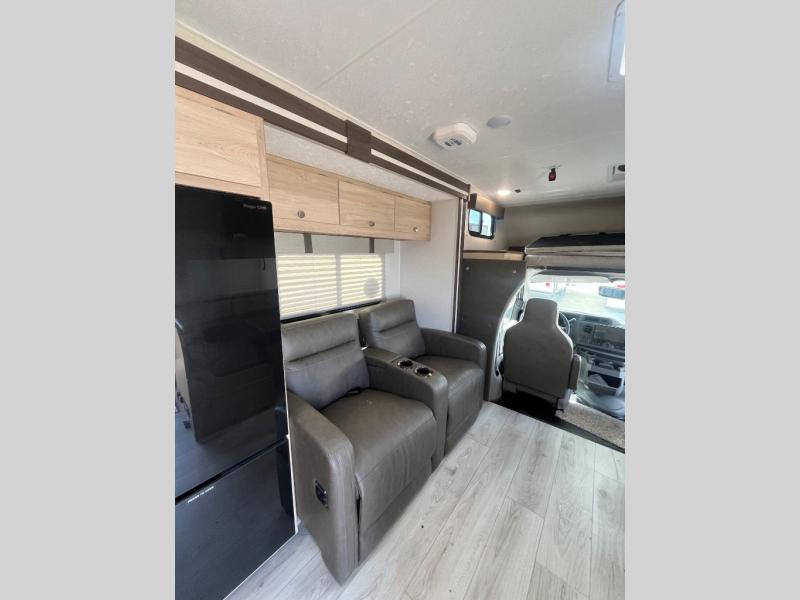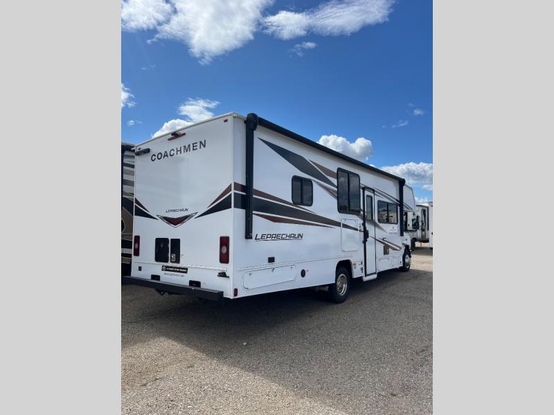 With each Leprechaun Class C gas motorhome by Coachmen you will enjoy "better" interior appointments, like the residential-sized beds, on-demand tankless water heater, and 15,000 BTU A/C. A dash radio and a backup monitor will let you easily navigate the open road like pro. There are also pleated night shades inside, along with premium vinyl flooring, a shower skylight, and USB charging ports to name a few comforts and conveniences. The Leprechaun is constructed with composite sidewall and cabover floor construction plus a seamless one-piece roof material for a durable motorhome made to last.