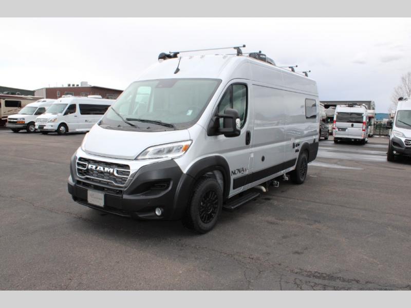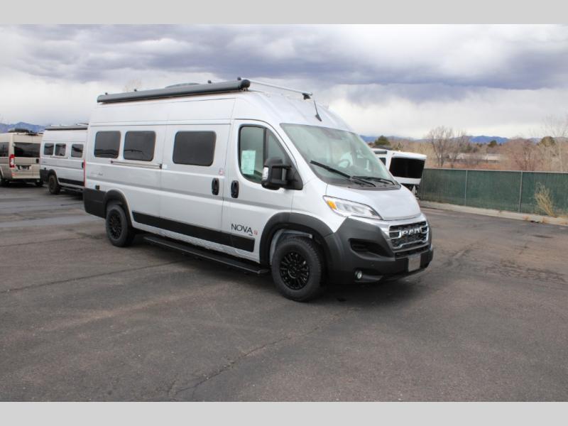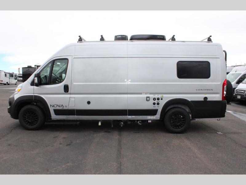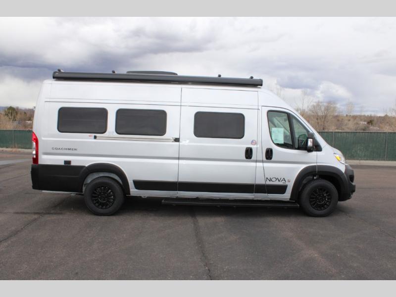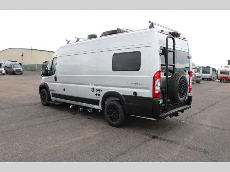 Each Nova Class B gas motorhome by Coachmen features Sumo Spring front and rear suspension for a smooth ride. Each unit is built on a Ram ProMaster 3500 chassis, and is powered by a 3.6L V6, 24 valve engine with 280 HP. You will appreciate the innovative Firefly multiplex system, the Sure Level tank sensors, and the 3 Group 31, 115AH AGM batteries for added power, as well as a new 24" LED Smart TV to help keep you entertained on long trips. Inside, you'll find solid hardwood cabinetry, a fiberglass shower verses the competitors ABS shower, a remote control MaxxAir fan with a rain sensor, and many more comforts to make you feel right at home. There is also a Truma Aventa 13,500 BTU A/C with three speeds, a dehumidifier, and night mode to ensure your comfort throughout each trip!