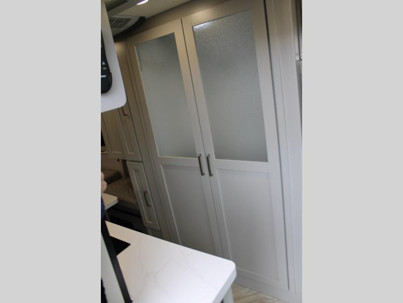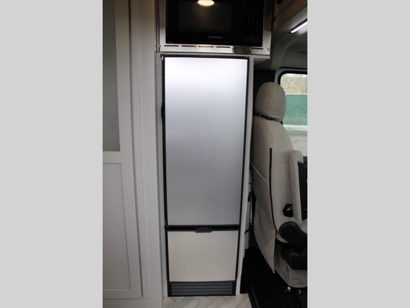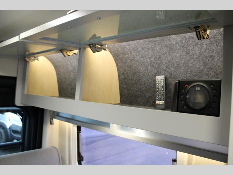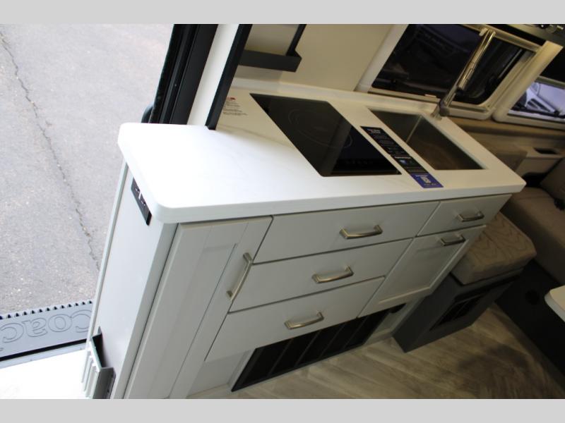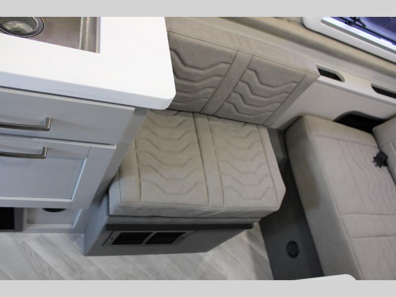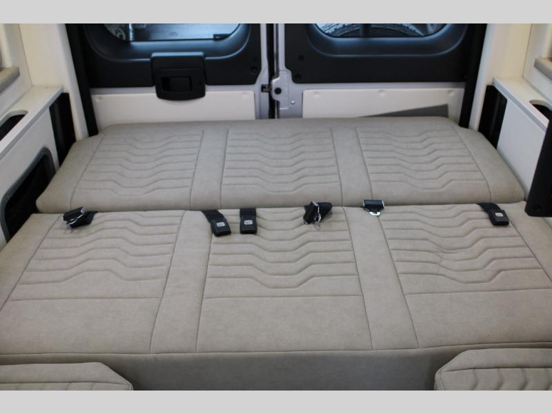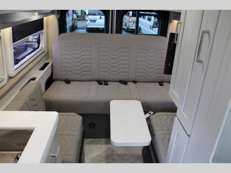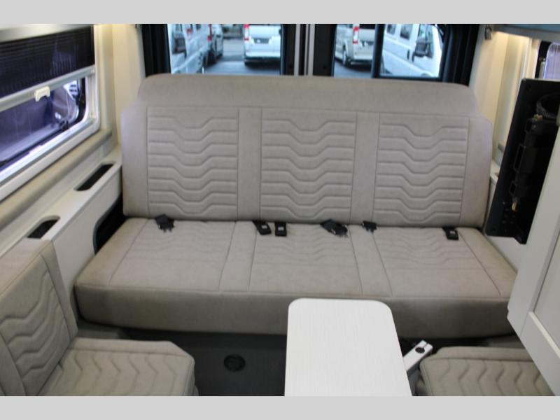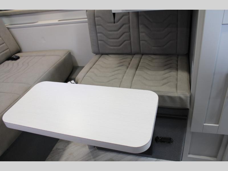 Grab your honey and head to your favorite camping spot in this cozy camper van. Once you park for the day, you can swivel the captain's seats around and enjoy coffee at the removable cockpit table. Lunch can be made on the induction cooktop, and the cold ingredients can go back in the 7.3 cu. ft. refrigerator. The convenient wet bath allows you to freshen up after a hike, and the rear lay-flat power sofa will provide comfortable sleeping space when you're ready to turn in for the night. There are also two jump seats and a lagun table if you want to say up and play a game of cards!