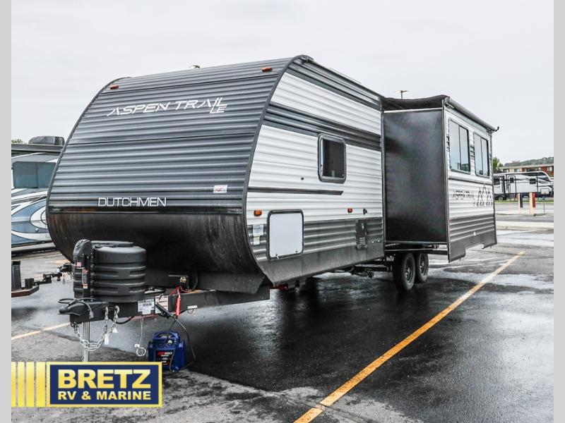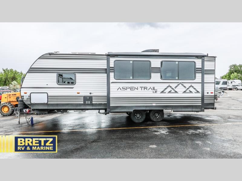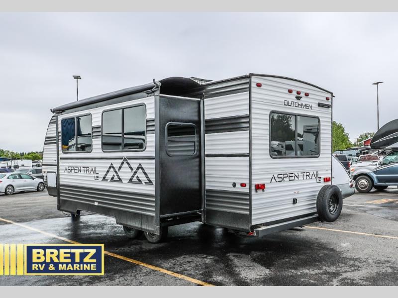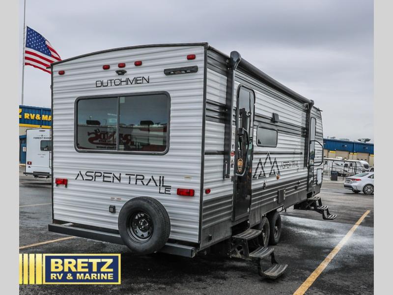 With any Aspen Trail LE travel trailer by Dutchmen, you will have front diamond plate protection, magnetic baggage door catches, and easy lube axles for smooth towing. The interior offers a Home Series interior design collection for an at-home feel, full extension drawer guides throughout, oversized windows, pleated shades, and no carpet to quickly clean up sand and water from the lake. You'll also appreciate the high efficiency furnace, on-demand tankless water heater, and the Solar Spirit Packages for off-grid capabilities. Make your selection today and enjoy a smaller, lighter-weight RV!