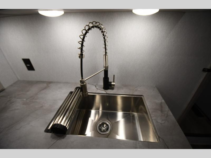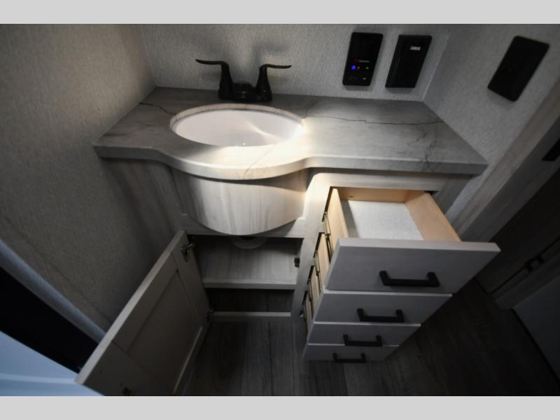 The 27BHOK is built for outdoor living. Its fully equipped exterior kitchen makes it easy to cook, entertain, and enjoy the open air. With generous storage, prep space, and seamless access to the main living area, this model is ideal for campground gatherings, tailgates, and extended stays.