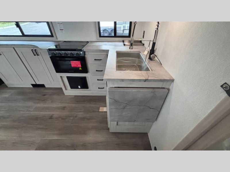 The Blackthorn Half-Ton fifth wheels by EAST TO WEST have floorplans starting under 7,500 lbs. and hitch weights below 1,400 lbs., so you can easily tow them with your half-ton truck! Durable construction includes Alphaply TPO roofing, Crane Max gel coated fiberglass exterior, and double-welded sidewalls, windows, and floors for maximum durability. The Blackthorn 4 Seasons Package comes with a 35,000 BTU furnace, 12V heat pads on all holding tanks, formaldehyde free fiberglass insulation, and more features that will extend your camping season or allow you to full-time! You will appreciate having an on-demand tankless water heater, a Winegard Air 360+ TV antenna with Wi-Fi prep, and a universal all-in-one docking station for your units functions. Once inside, you'll enjoy how easy it will be to keep the vinyl flooring clean, and there are solid wood shaker-style cabinet doors, bedside nightstands, and the industry's first locking latch for glass shower doors.