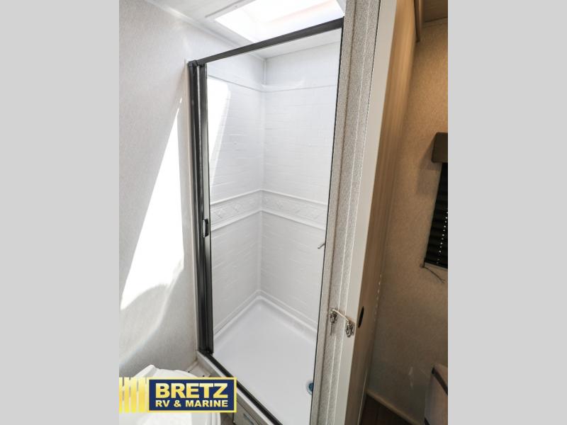 The journey will be oh-so enjoyable when you use this Entrada Class C gas motorhome to explore! You will be able to create meals each day that you are on the road because the kitchen has everything you will need, like a convection microwave, a round sink, a cooktop, a flip-up countertop, and a 10.7-cubic foot refrigerator. There is even a pantry/wardrobe for you to use to store spices, chips, or canned goods. Across from the queen bed slide, you'll find a private bath so you can get cleaned up in the morning, and the vanity with a medicine cabinet is located just outside the bathroom so that someone can brush their teeth while another is showering.