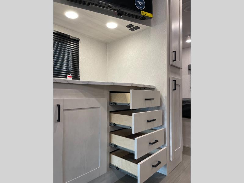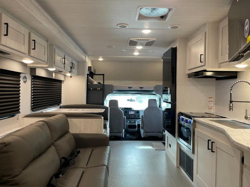 With any Entrada Class C gas motorhome from EAST TO WEST, the construction consists of an automotive painted fiberglass front cap, a Dicor DiFlex ll TPO roof membrane, and Azdel composite sidewalls for added durability. Some of the Entrada value package features include 12V tank heaters to camp during the cooler months, the Winegard Air 360+, plus backup and sideview cameras with a monitor for safety on and off the road. The interior offers a 7-foot interior height for a spacious feel, and 12V USB charge ports will keep your electronics powered up. Choose an Entrada for its tasteful design, attention to detail, bright interior and affordable price-point!