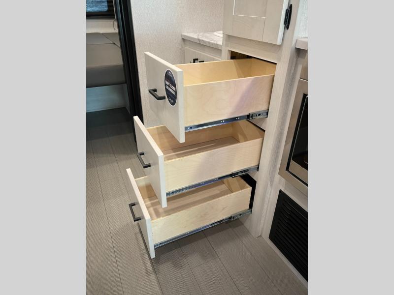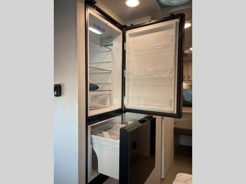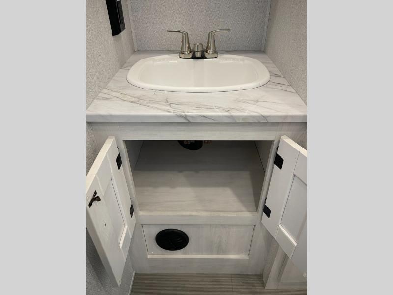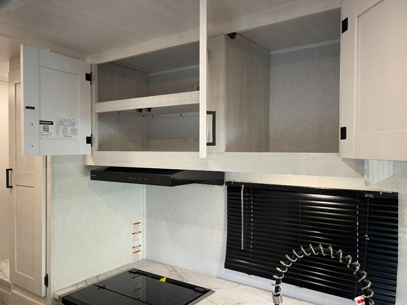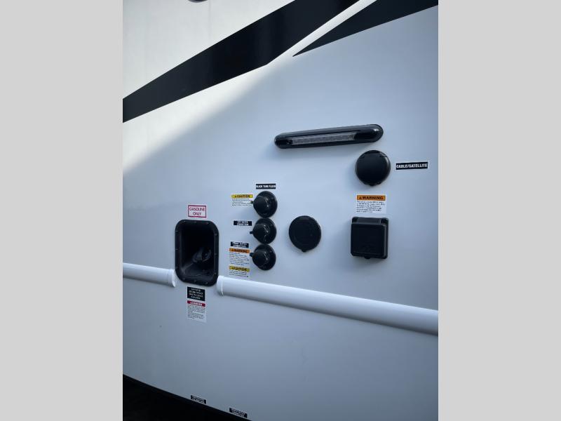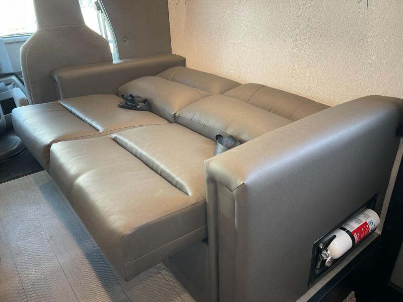 This coach is perfect for traveling with a friend or honey since there are two twin beds that can convert to a king-size bed if you choose! There is a 62" sofa and 42" x 68" booth dinette in the main living area that can double as seating and sleeping space, plus there is a bunk over cab for the little ones. Once you are fully rested, head to the kitchen to prepare a delicious breakfast feast with the convection microwave and cooktop. Use the double sink to clean up, and the 10.7-cubic foot refrigerator to keep your perishables fresh. You can even add some extra prep space to this area by using the countertop extension.