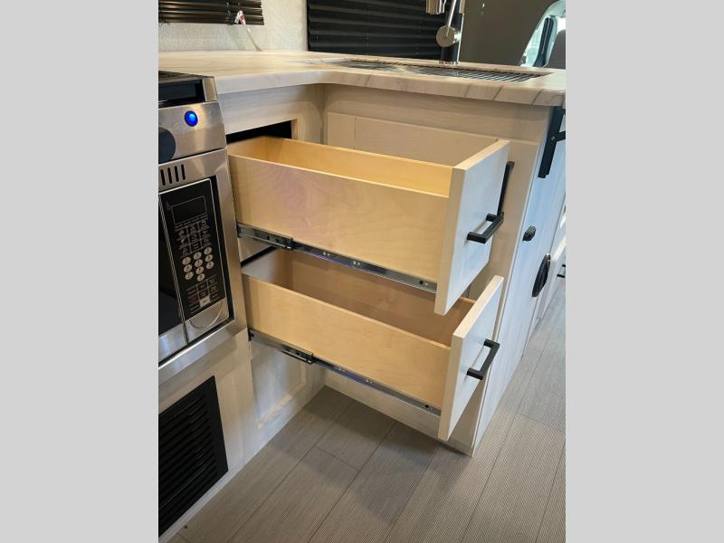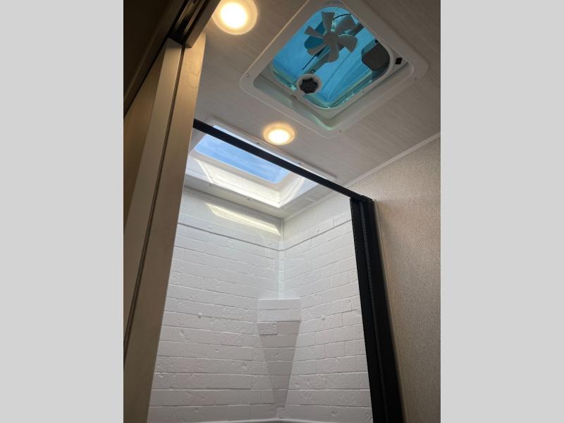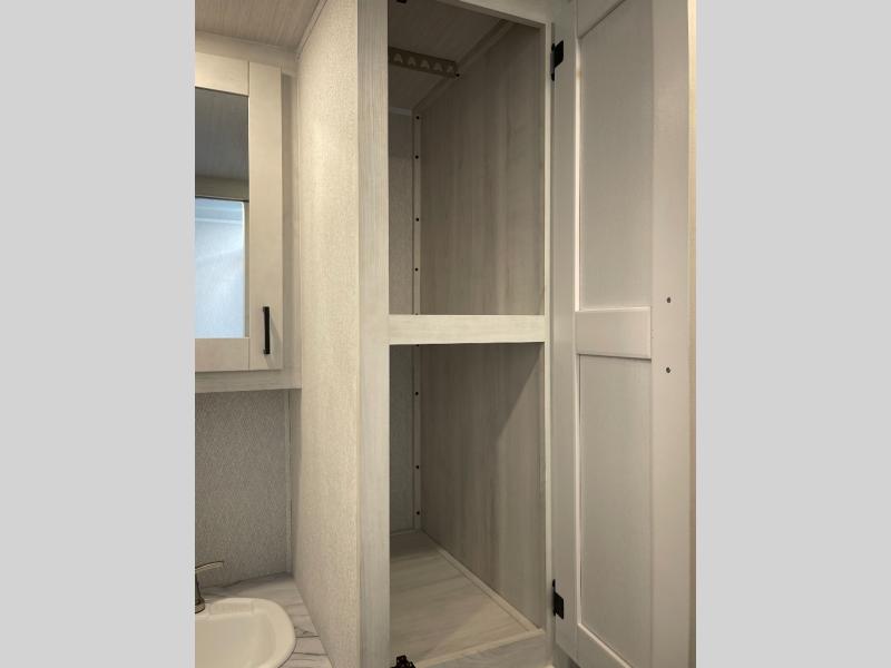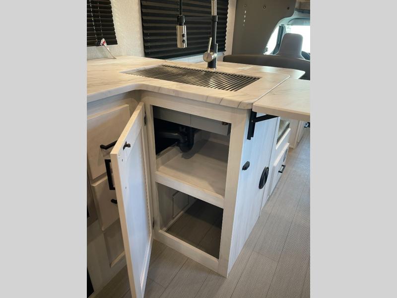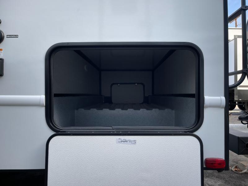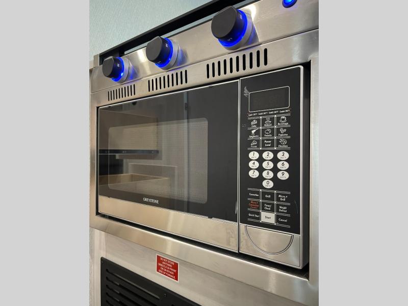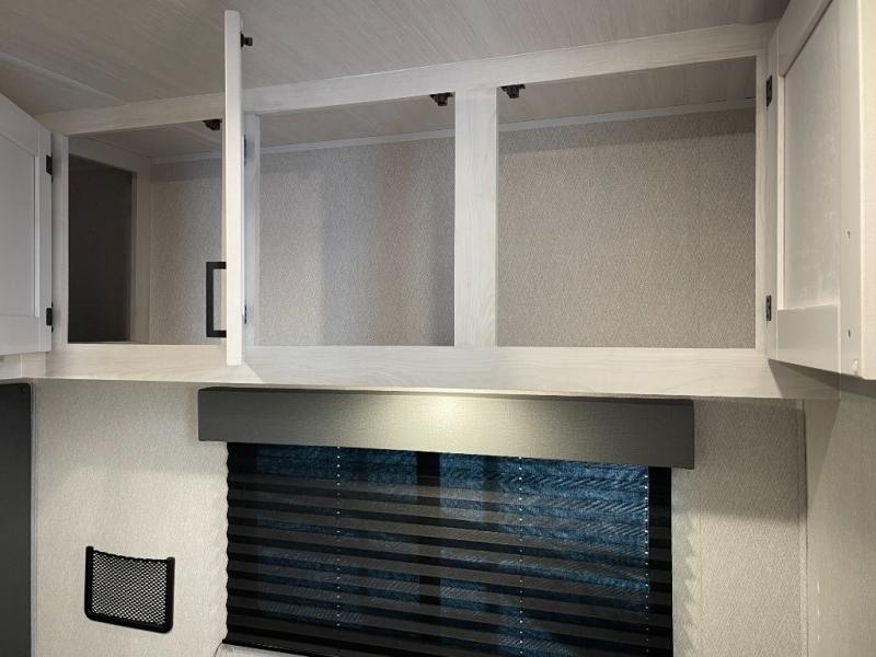 This coach is perfect for traveling with a friend or honey since there are two twin beds that can convert to a king-size bed if you choose! There is a 62" sofa and 42" x 68" booth dinette in the main living area that can double as seating and sleeping space, plus there is a bunk over cab for the little ones. Once you are fully rested, head to the kitchen to prepare a delicious breakfast feast with the convection microwave and cooktop. Use the double sink to clean up, and the 10.7-cubic foot refrigerator to keep your perishables fresh. You can even add some extra prep space to this area by using the countertop extension.