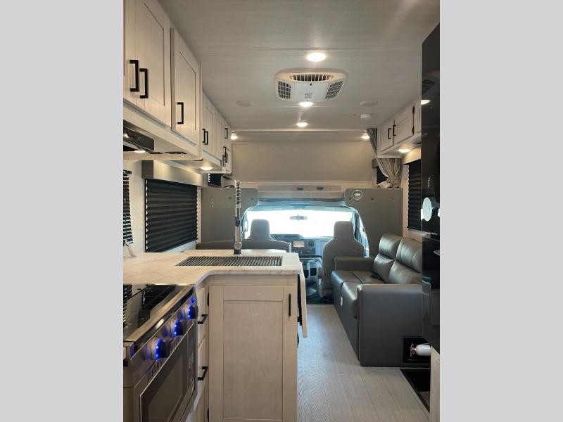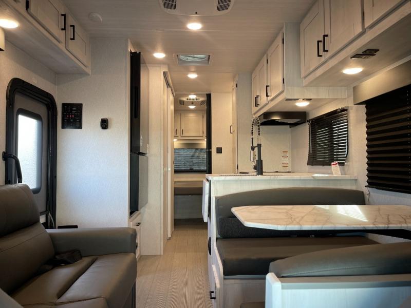 With any Entrada Class C gas motorhome from EAST TO WEST, the construction consists of an automotive painted fiberglass front cap, a Dicor DiFlex ll TPO roof membrane, and Azdel composite sidewalls for added durability. Some of the Entrada value package features include 12V tank heaters to camp during the cooler months, the Winegard Air 360+, plus backup and sideview cameras with a monitor for safety on and off the road. The interior offers a 7-foot interior height for a spacious feel, and 12V USB charge ports will keep your electronics powered up. Choose an Entrada for its tasteful design, attention to detail, bright interior and affordable price-point!