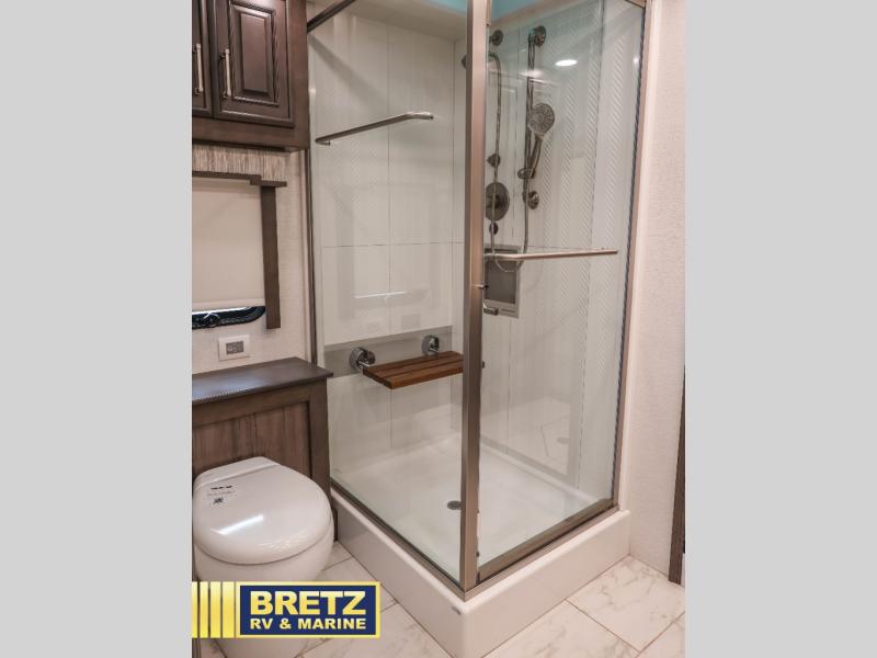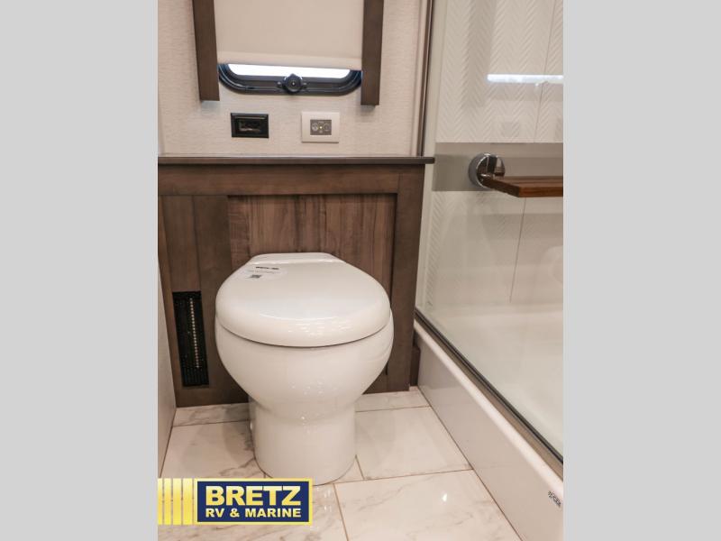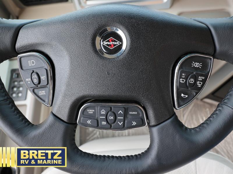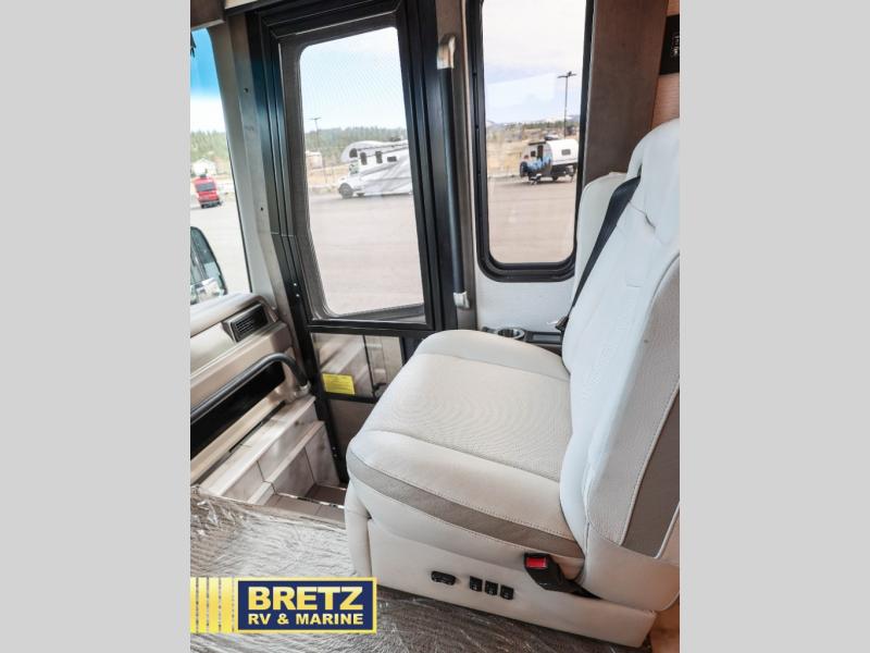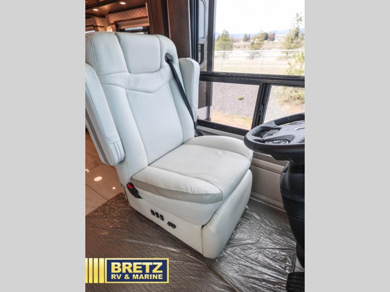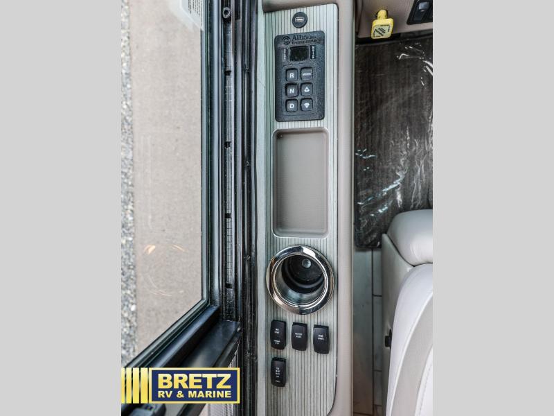 With any Aspire Class A diesel motorhome by Entegra Coach you will enjoy a smooth ride thanks to the Spartan K2 raised-rail chassis, the independent front suspension, and the E-Z Steer adjustable power steering assist. The leather captain's seats include 6-way power adjustment, lumbar and footrest functions that will have you sitting in the lap of luxury, plus there is a Valid Truline air leveling system with auxiliary air compressor for a smooth ride and easy set up. You'll find many high-end features inside, including a Teakwood shower seat in the bath, a decorative ceiling feature, solid surface countertops with dimmable LED accent lighting, and premium Crown Compass furniture. The Aspire also features exterior amenities that will make being on the road easier than ever. The push-button, power-unlatching baggage doors let you unload in record-time, and the Girard awnings will provide tons of shade to relax outdoors. A few new features you are sure to enjoy include a portable Shark vacuum cleaner, a Splendide washer and dryer, plus a filtered water dispenser at the kitchen sink!