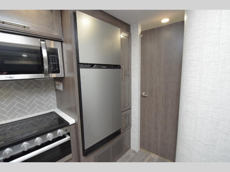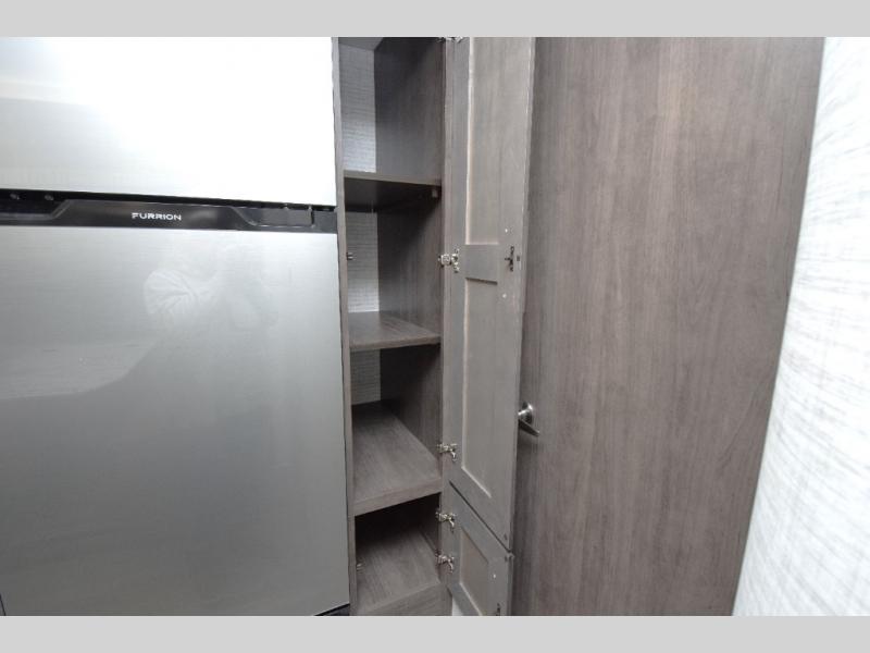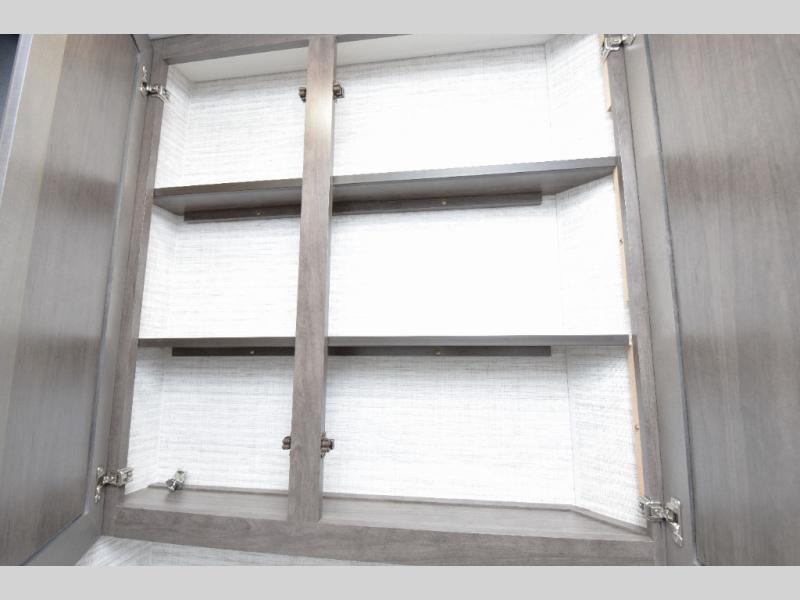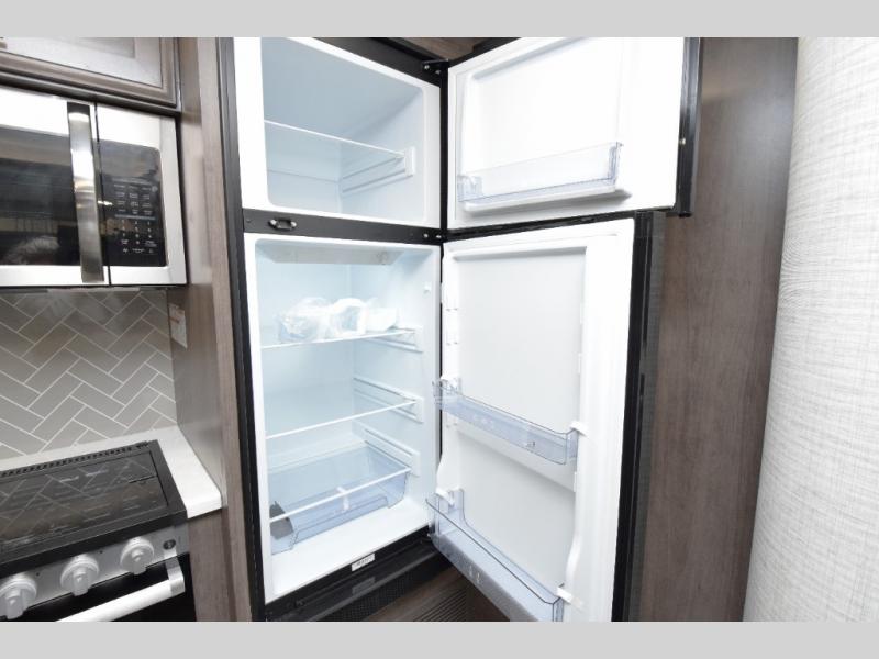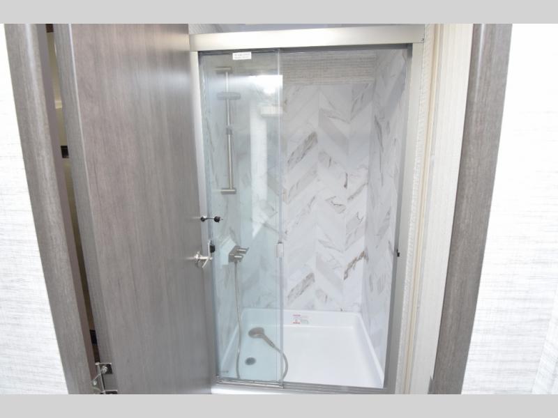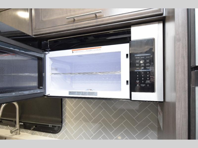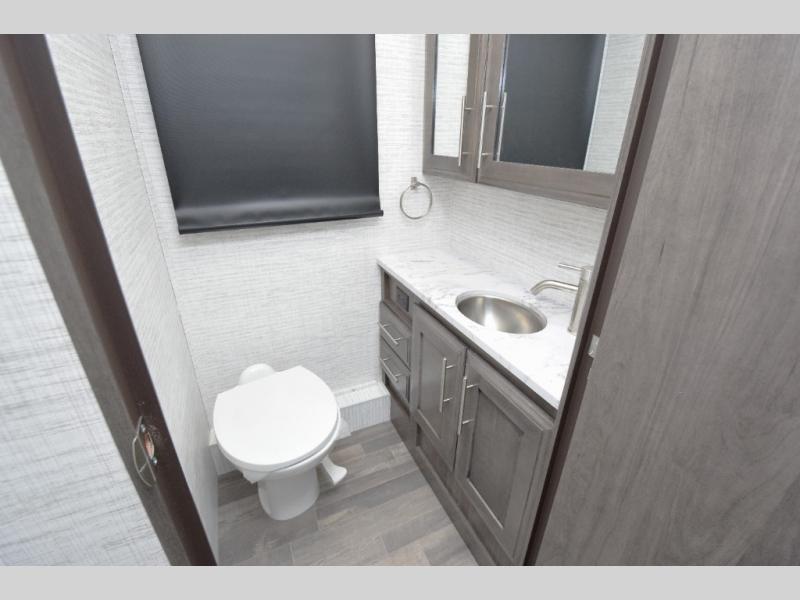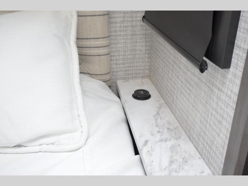 Inside, the Esteem 29V offers residential comfort on the move. Relax in your private bedroom with a walkaround queen bed and plenty of storage. The living area includes a cozy tri-fold sofa and booth dinette—both of which convert for additional sleeping space.