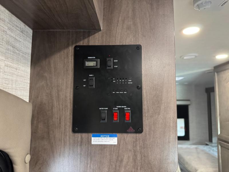 Spacious Interior: With a generous 7' ceiling height and high-intensity recessed LED lights, your living space feels open and inviting. A 4,000-watt generator and 12V house battery ensure all your power needs are met, while a 13.5K BTU A/C and 30K BTU furnace keep you comfortable year-round.