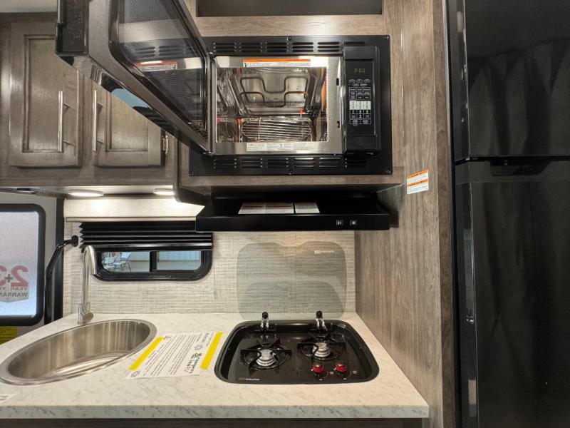 Well-Equipped Kitchen: Whip up delicious meals with ease on the two-burner cooktop, convection microwave, and stainless steel sink. The 10 cu. ft. refrigerator provides plenty of room for all your snacks and groceries!