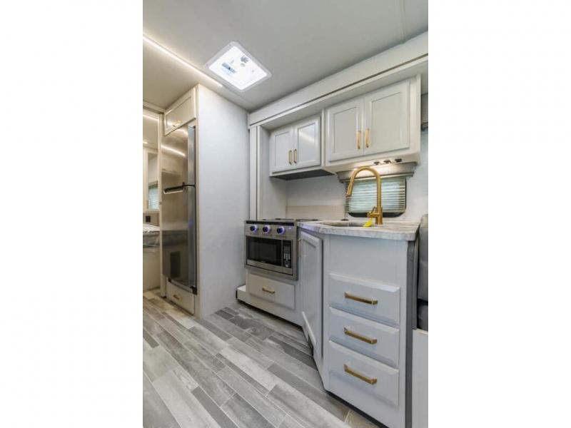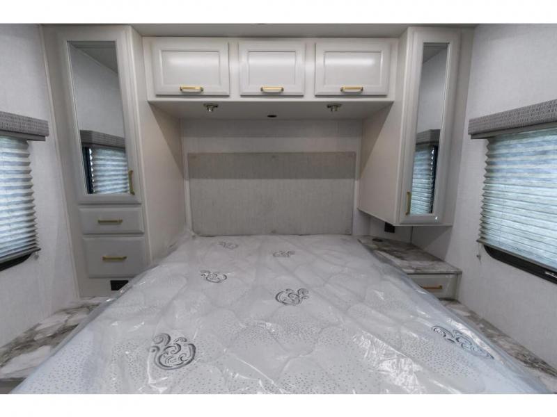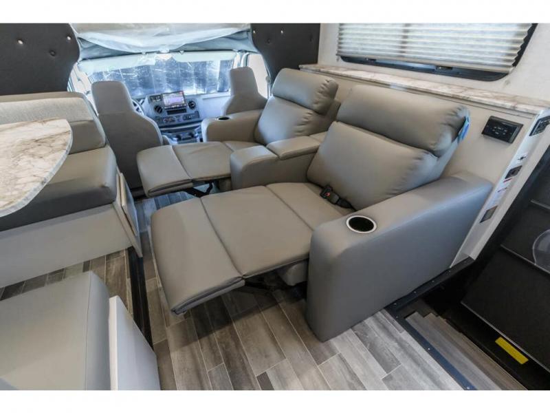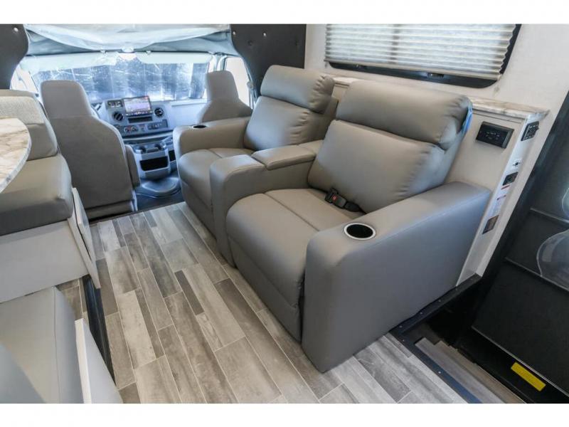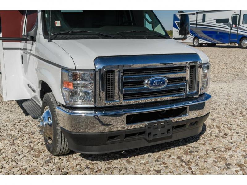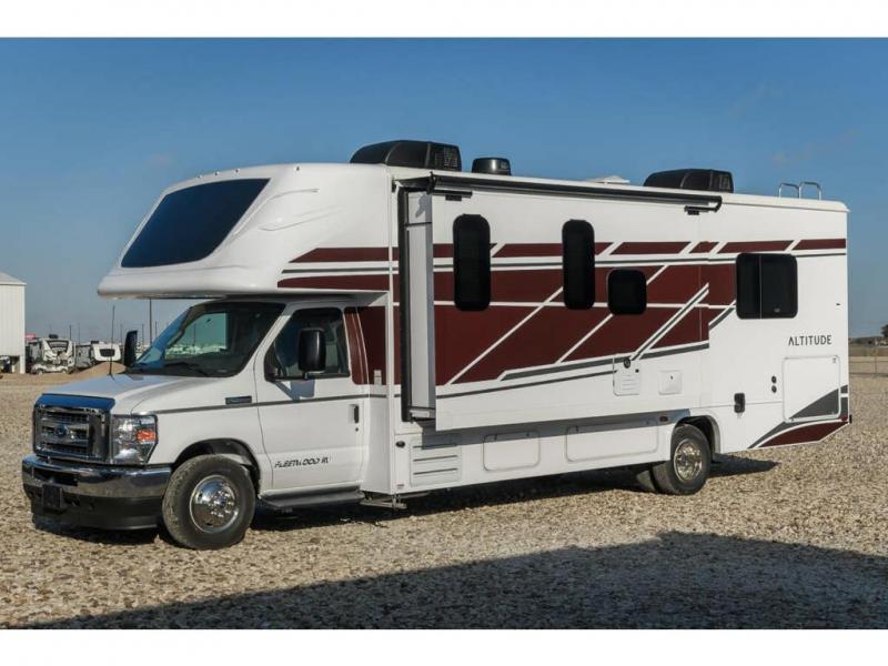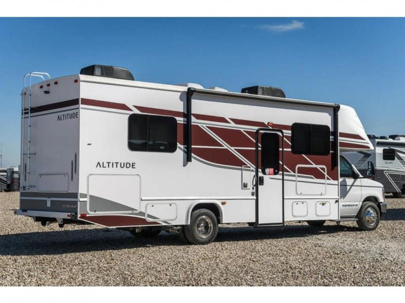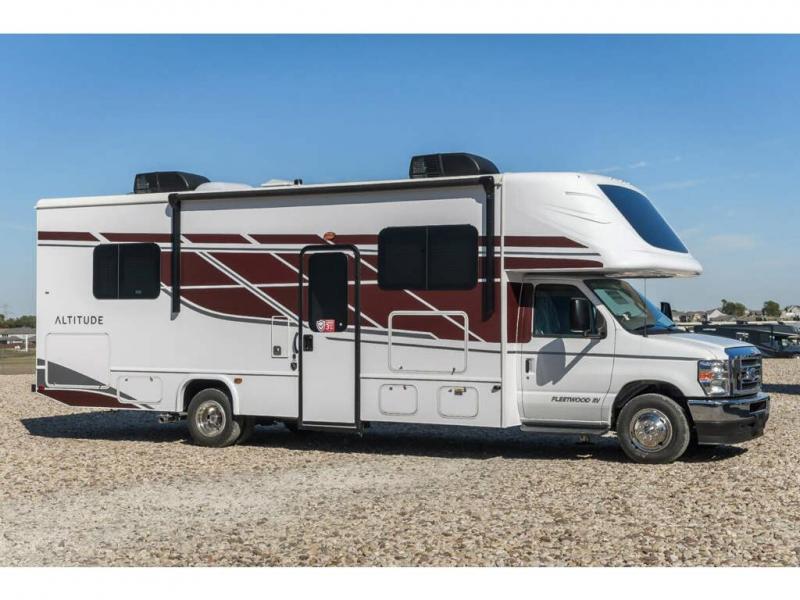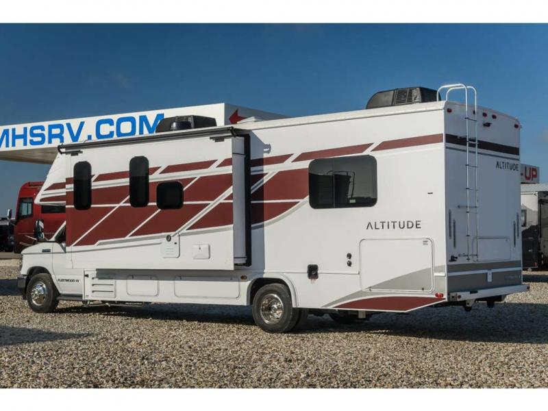 With any Altitude Class C gas motorhome by Fleetwood RV, you will enjoy unrivaled performance, unbeatable storage, and luxury at every turn! You will love the journey just as much as the destination with reclining back captain's chairs and side view cameras, plus there is a Ford 7.3L V8 engine for power you can feel. Each model features painted steel frame construction with a Powerlock System ll that interlocks the walls to the roof for added durability, along with Vacu-Bond aluminum framed sidewalls, roof, and floor. Outside, you'll find automatic hydraulic leveling jacks, patio lighting, slam latch luggage door handles, and a Winegard Air 360+ that will allow you to stay connected as you travel. Head inside to find Surf-X countertops, slide out fascia with coordinating interior wood color, hidden hinge cabinet doors, kitchen backsplash, and many more comforts!