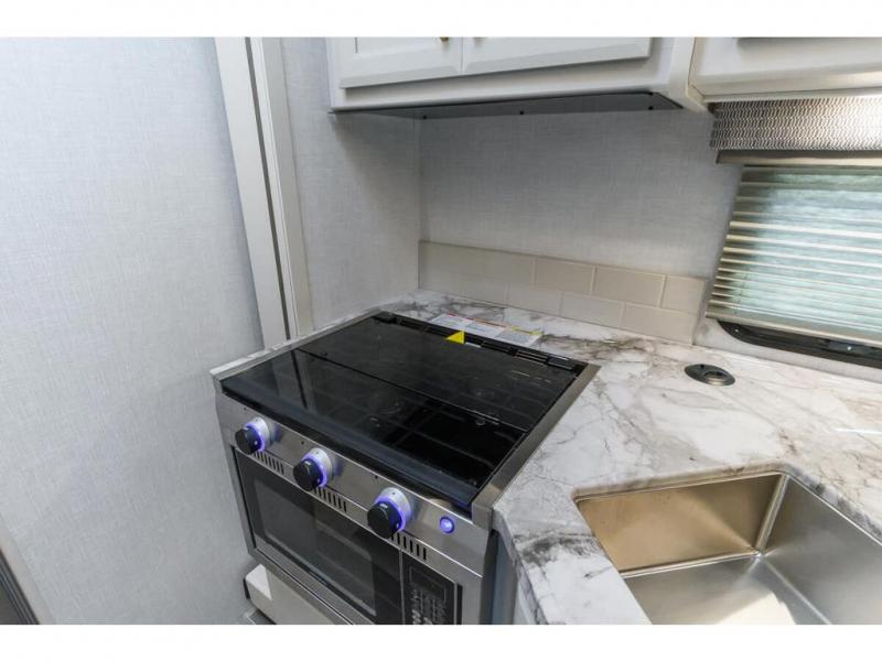 You can't go wrong when you choose this single slide out coach for five to six! Once you park for the day, you can unload the exterior pass-thru storage, then stretch your legs around the campground. A three burner range/convection microwave combo will let you whip up lunch once everyone is hungry, and you'll find seating space on the Dream Dinette and jack knife sofa. These both can double as sleeping space for guests, along with the overhead bunk. And the rear private bedroom with a 60" x 75" queen bed will make you feel right at home!