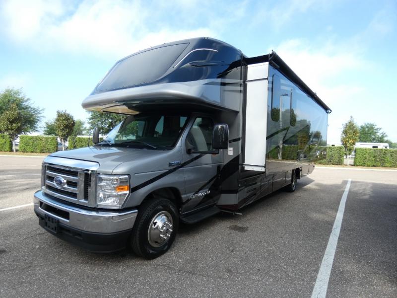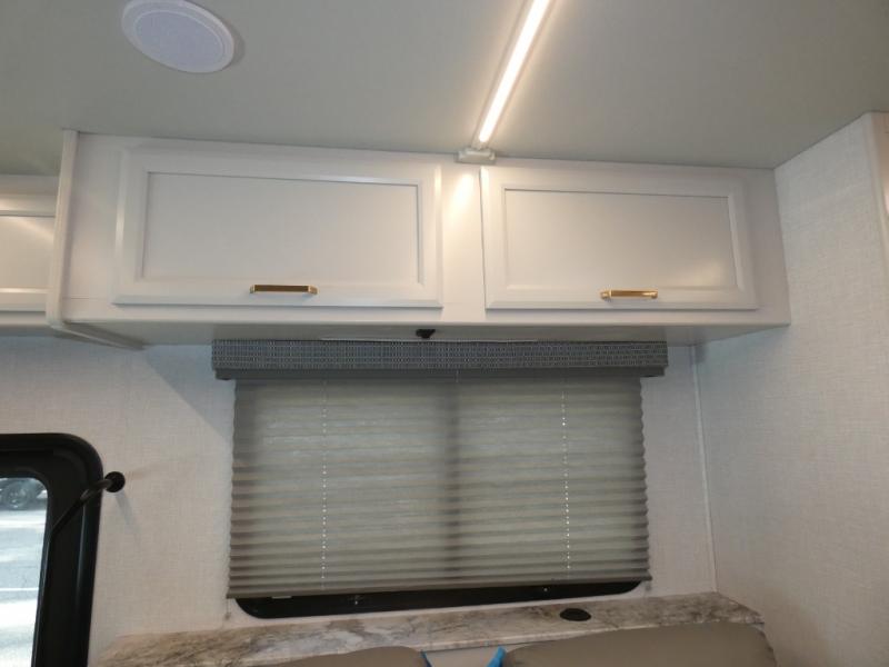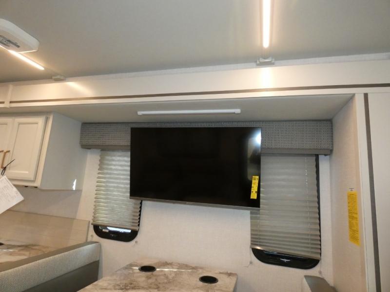 Escape to the adventure with this incredible Class C motorhome. Perfect for all families, this motorhome offers many sleeping spaces like a bunk over cab and a queen bed, the last one located in the rear private bedroom which boasts overhead cabinets, storage and drawers, and a wardrobe giving you and your partner plenty of space to store your clothes and belongings. Enjoy a refreshing time in the convenient full bathroom, equipped with the essentials to bathe after a long day of adventures. The combined kitchen/living area has everything you need to make you feel at home, starting with a three-burner cooktop, refrigerator, microwave, pantry, dream dinette, theater seats, and an LED TV, the perfect feature for having an entertaining time.