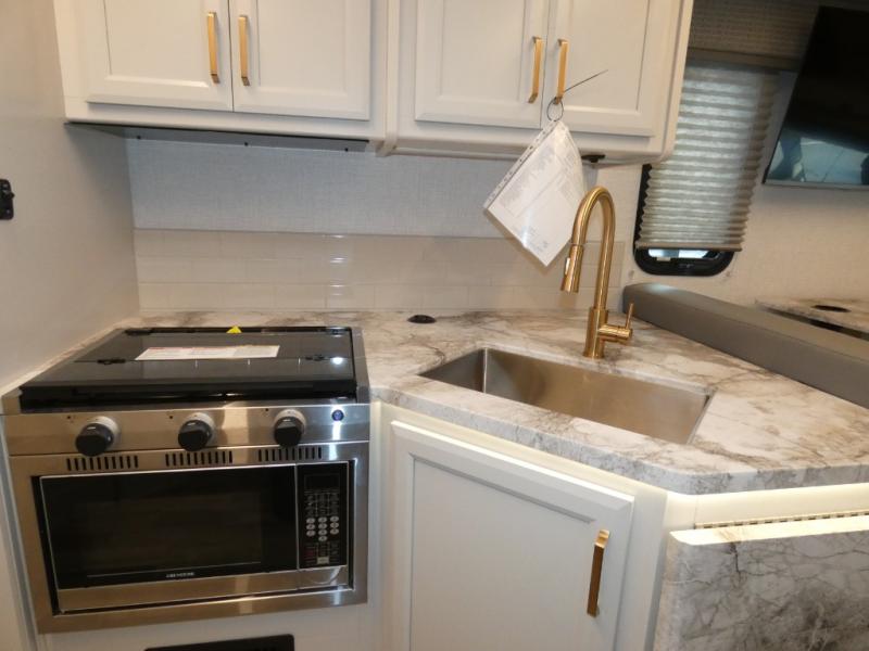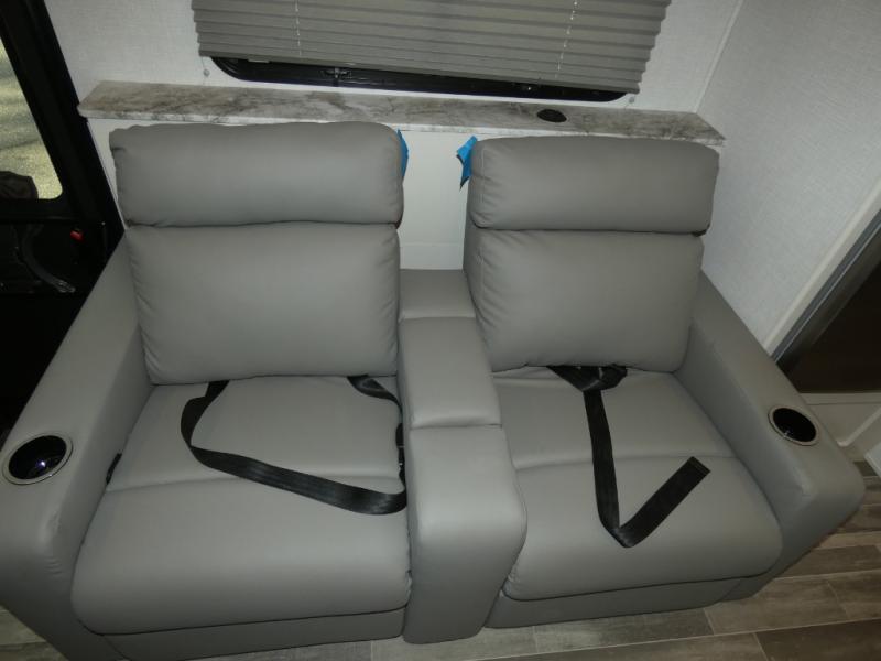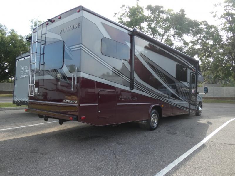 With any Altitude Class C gas motorhome by Fleetwood RV, you will enjoy unrivaled performance, unbeatable storage, and luxury at every turn! You will love the journey just as much as the destination with reclining back captain's chairs and side view cameras, plus there is a Ford 7.3L V8 engine for power you can feel. Each model features painted steel frame construction with a Powerlock System ll that interlocks the walls to the roof for added durability, along with Vacu-Bond aluminum framed sidewalls, roof, and floor. Outside, you'll find automatic hydraulic leveling jacks, patio lighting, slam latch luggage door handles, and a Winegard Air 360+ that will allow you to stay connected as you travel. Head inside to find Surf-X countertops, slide out fascia with coordinating interior wood color, hidden hinge cabinet doors, kitchen backsplash, and many more comforts!