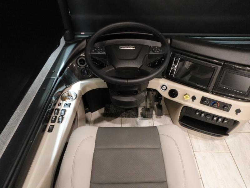 With any Palisade Class A diesel motorhome by Fleetwood RV, you will be met with luxury at every turn! There is a Freedom Bridge foundation and a Freightliner Custom Chassis plus an Allison 3000 6-speed transmission for a smooth drive. The Vacu-Bond aluminum framed constructed sidewalls, roof, and floors mean you can enjoy your coach for years to come, and the Powerlock System interlocks the floor, walls and roof for even more strength. Outside, the basement pass-through storage and side swing aluminum bus-style baggage doors will let you easily pack camp gear, and the 4-color premier full body paint is sure to turn heads as you travel down the highway. Additional exterior features include automatic hydraulic leveling jacks, a King universal stationary satellite, automatic entrance steps, and the list goes on! Once inside, you can enjoy the porcelain tile flooring, hardwood cabinetry, elegant tile backsplash, dual bath sinks, and glass shower door to name a few comforts!