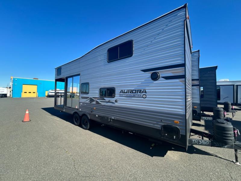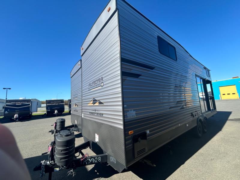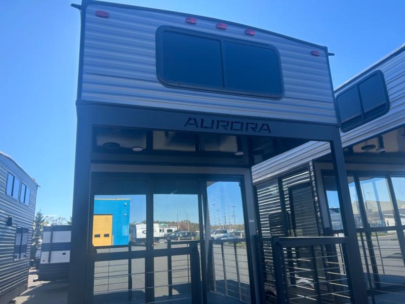 Comfortability, usability, and quality is what you will find in each one of these Forest River Aurora travel trailers, toy haulers or destination trailers! They are designed with a superior build and packed full with industry leading, functional, and distinctive standard features. SolidStep entrance steps and a Safe-T rail door assist on main entry door to help you safely enter and exit the unit. The diamond plate rock guard will protect your unit from road debris and the nitrogen filled radial tires, which keep their pressure longer, offer better fuel economy. You will also find upgraded JBL Elite exterior speakers outside, an electric awning with multicolor lights and remote, plus flush mount baggage doors for easy packing. The interiors are beautifully designed with a deep undermount farm style sink, stainless steel appliances, and linoleum flooring in the slide outs which will be easy to clean. Come find your favorite model today!