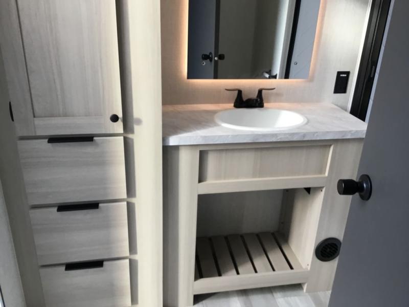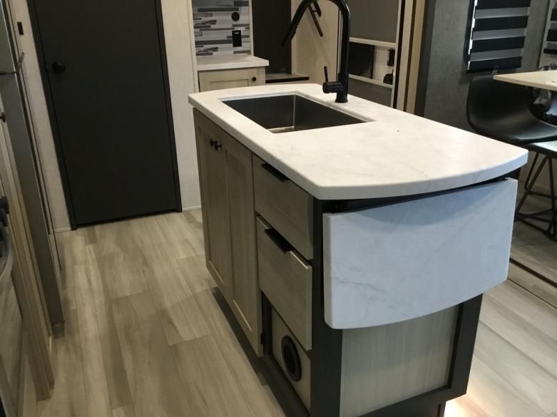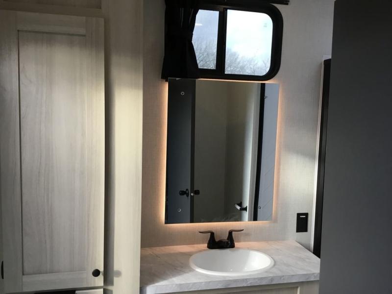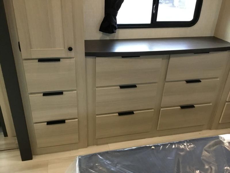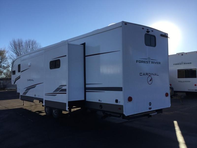 With any Cardinal fifth wheel by Forest River you will enjoy affordable luxury at every turn. These models are constructed with residential fiberglass insulation in the roof and floor, a sectioned ABS plastic underbelly armor, and a vacuum bonded, welded aluminum structure for added strength and durability. You will also find seamless roto-cast holding tanks, an outdoor shower, and 4-point auto leveling for quick and easy setup. Each model includes a best-in-class, high-efficiency 35,000 BTU furnace, along with a 18,000 BTU ducted A/C, with second and third A/C prep, plus an on-demand tankless water heater for added convenience. There are carpet-free living spaces, residential backsplash, motion lighting throughout, and many more comforts!