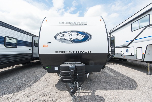 If the open road is calling your name, then answer it with one of these Forest River Cherokee travel trailers or toy haulers! A seamless roofing membrane with heat reflectivity covers these units and an armored underbelly tank enclosure protects it from road debris. The Power Gear frame technology holds them together and also comes with a space saver rail design. An outside shower with hot and cold water helps to keep the dirt outside where it belongs. With the Campfire package, you will get an air fryer, an on demand tankless water heater, bedroom cabinets, and more convenient features. A few other features you will appreciate include a super kitchen, USB charging station, and light filtering sheer shading premium blackout zebra shades for added privacy. Come find your favorite model today!