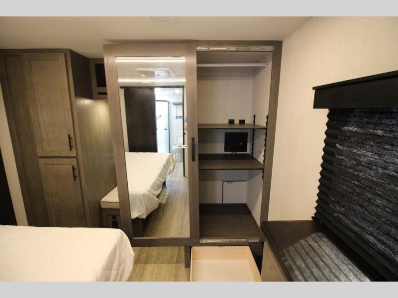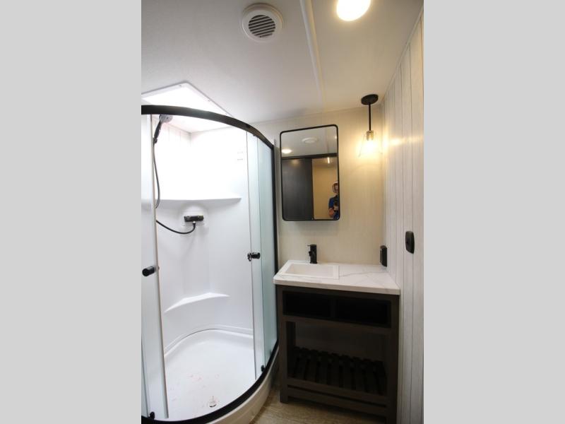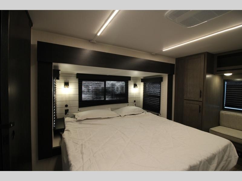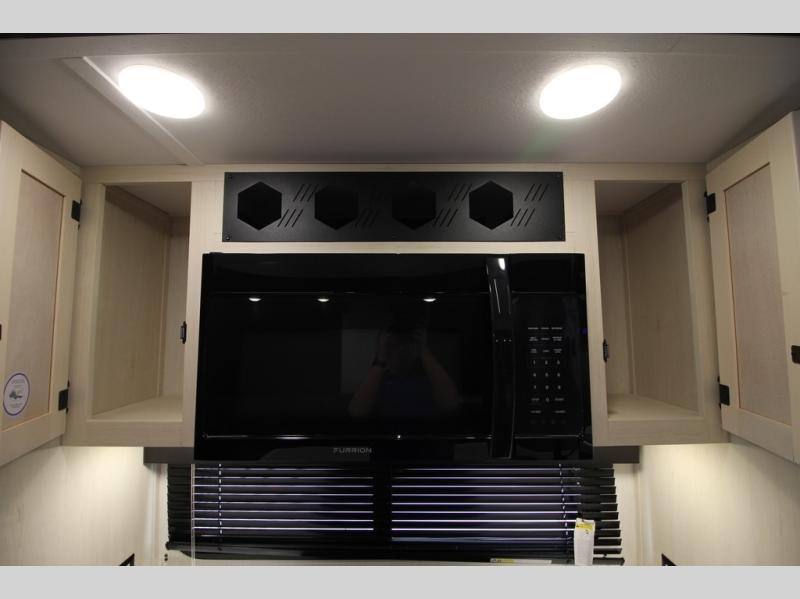 You will have amazing residential comfort in the Forest River Cherokee Arctic Wolf Suite fifth wheels! These units have a “SuperStor” dual-cavern basement storage compartment to allow you to bring more gear, and they have been constructed with a “ToughBend” rigid skirt metal design, a 1x engineered wood “SuperTruss” roof structure with 3/8" decking, and a 5/8” tongue-and-groove plywood floor decking. Each model includes Leash Latch pet safety technology, an outside shower with hot/cold water, preparations for an exterior TV, and motion-sensing lighting. The supersized central air conditioning unit (15,000 BTU) with quick cool and second oversized 15,000 BTU ducted A/C will cool your unit down in a snap when you camp in the hot summer months.