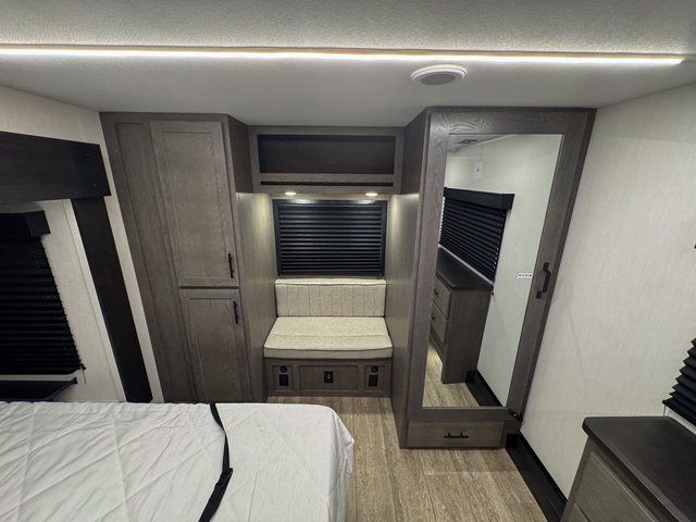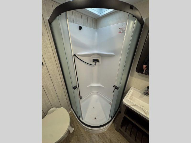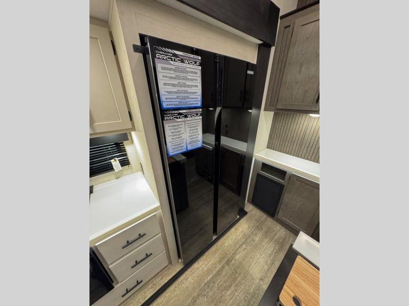 You will have amazing residential comfort in the Forest River Cherokee Arctic Wolf Suite fifth wheels! These units have a “SuperStor” dual-cavern basement storage compartment to allow you to bring more gear, and they have been constructed with a “ToughBend” rigid skirt metal design, a 1x engineered wood “SuperTruss” roof structure with 3/8" decking, and a 5/8” tongue-and-groove plywood floor decking. Each model includes Leash Latch pet safety technology, an outside shower with hot/cold water, preparations for an exterior TV, and motion-sensing lighting. The supersized central air conditioning unit (15,000 BTU) with quick cool and second oversized 15,000 BTU ducted A/C will cool your unit down in a snap when you camp in the hot summer months.