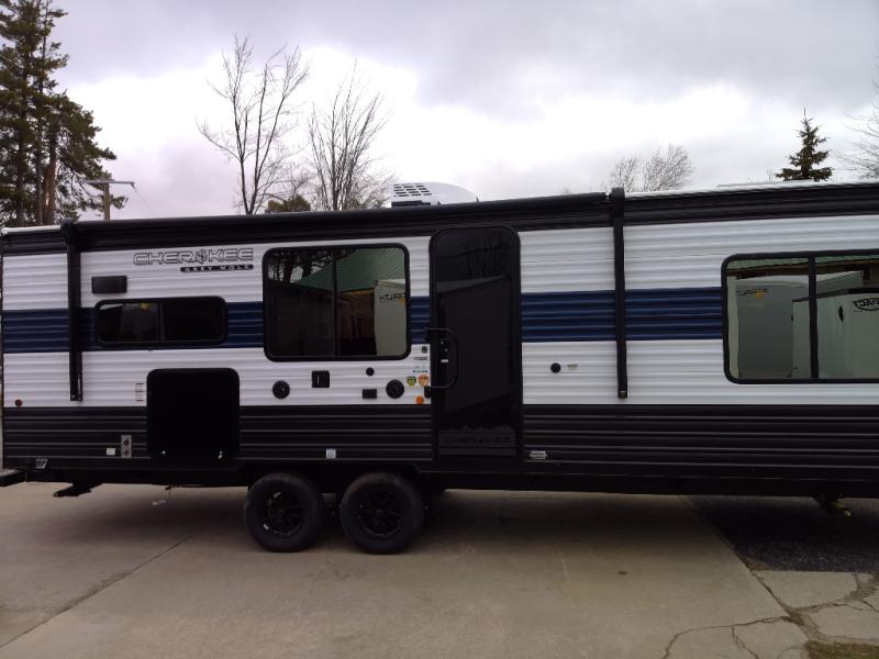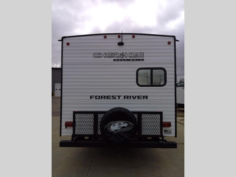 Whether it's a journey that will take you to new locations or a tried-and-true getaway to that favorite and memorable destination, the Forest River Cherokee Grey Wolf travel trailers and toy haulers are going to make the trip worth it every single time! You can travel in confidence with the premium wheel package, seamless roofing membrane with heat reflectivity, Power Gear frame technology with space-saver rail design, and Cherokee back-up camera system. The Cherokee Grey Wolf's interior is highly attractive with its stainless steel kitchen suite package and premium bedding ensemble and comforter. You will also find a black waste tank flush-out kit, an outside shower with hot and cold water, an armored underbelly tank enclosure, and an RV grill quick connect.