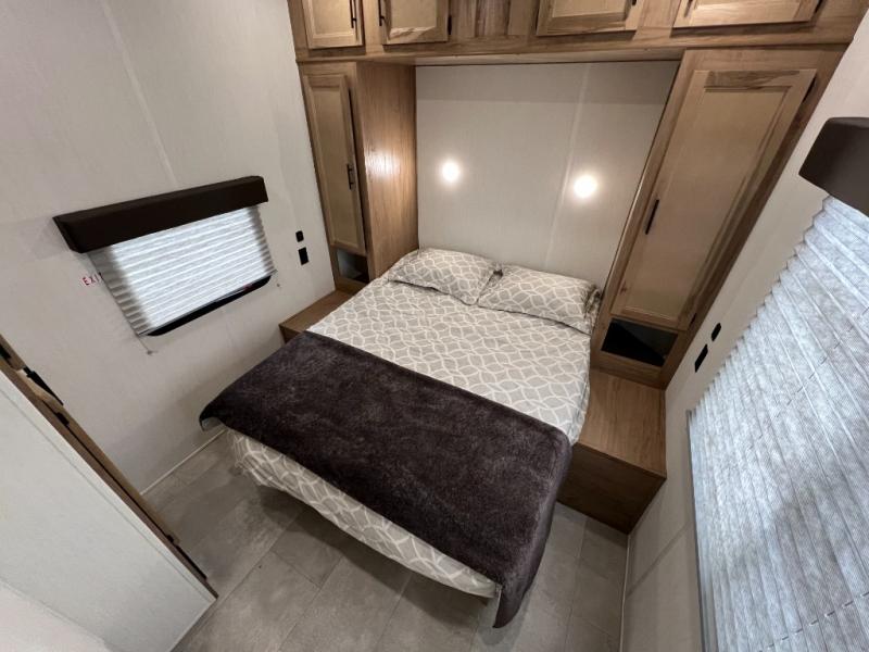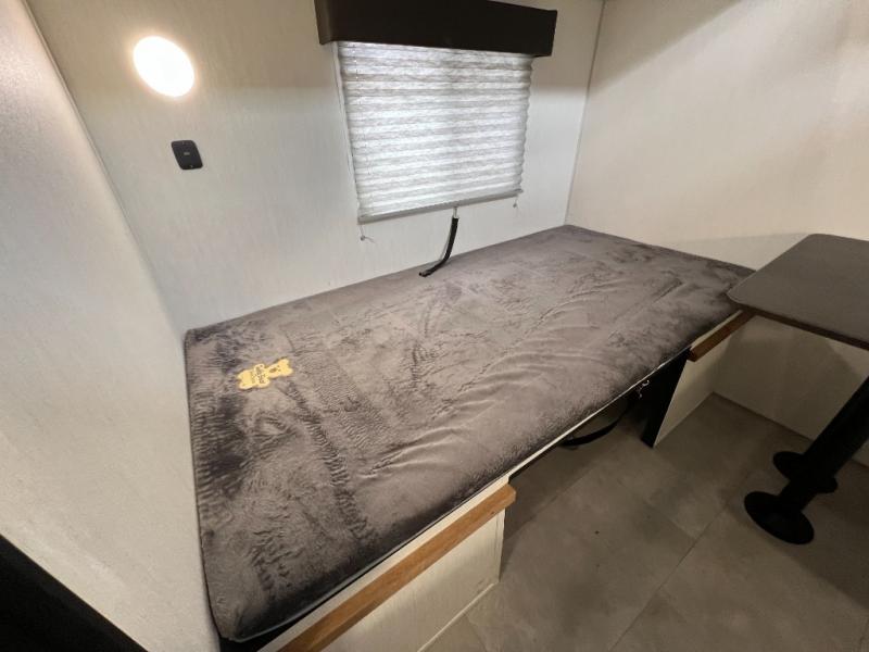 Enjoy comforts of home wherever you decide to roam in a Timberwolf destination trailer by Forest River. The seamless roofing membrane with heat reflectivity and power gear frame technology provide a durable foundation to your RV. You will also appreciate the exclusive solar thermo controlled reflective tinted safety glass windows, tire pressure monitors, and an on-demand tankless water heater to make extended stays easier than ever. Inside, the night shades will provide your crew with privacy, while the LED lights illuminate your space. There are also seamless countertops, along with a premium bedding ensemble and comforter, USB charging stations, a supersized central A/C unit, and many more comforts!