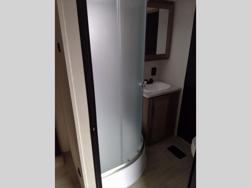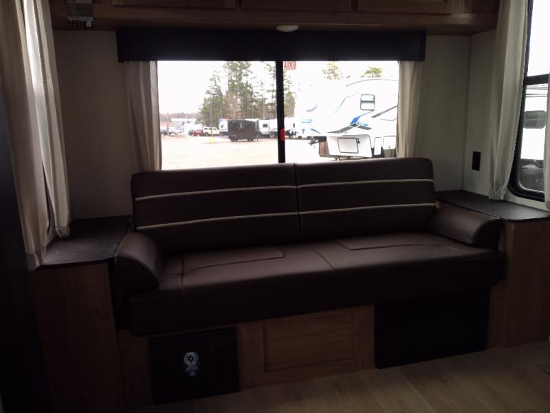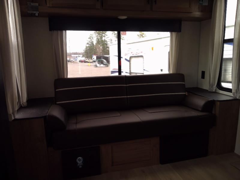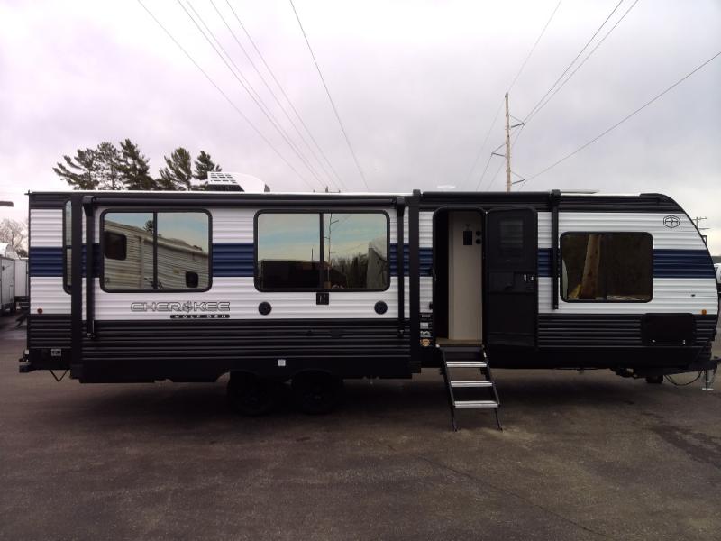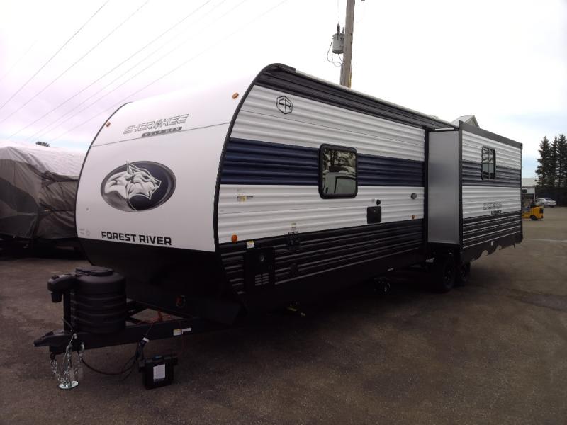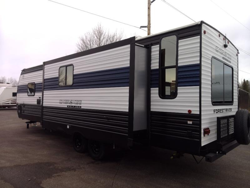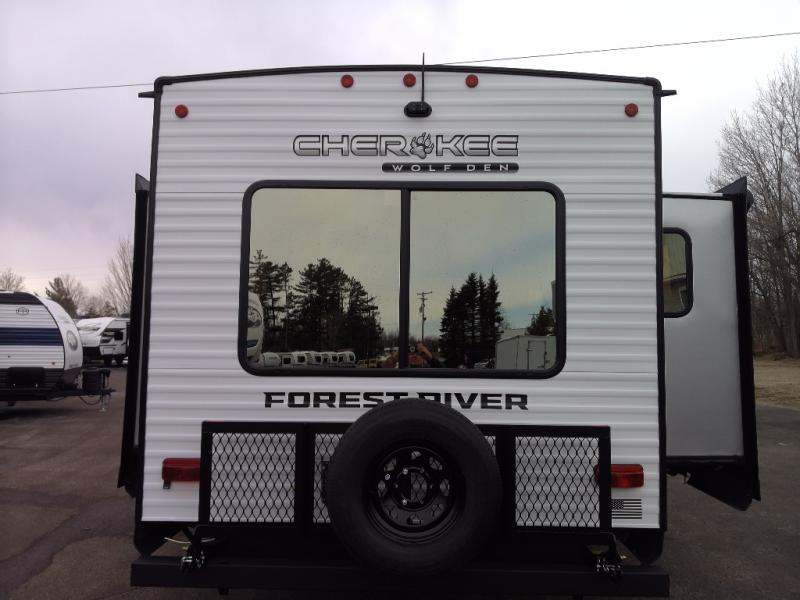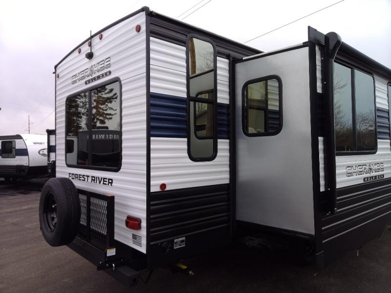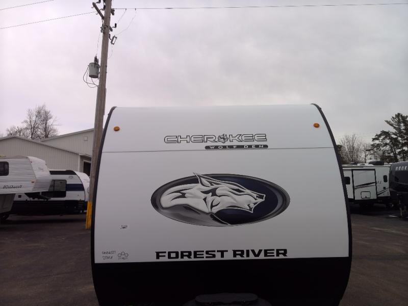 If the open road is calling your name, then answer it with one of these Forest River Cherokee Wolf Den travel trailers! They are built with an aerodynamic smooth radius front profile, a one-piece walkable decked roof, and a Cherokee exclusive stable step with oversized landing. There are also four stabilizer jacks outside, along with ladder prep, a premium wheel package and exclusive solar thermo controlled reflective tinted safety glass windows. The seamless countertops inside will be easy to keep clean, and the premium bedding will have you feeling right at home. There are also USB-C charging stations to keep your electronics charged and ready to go, plus many more stand-out features!