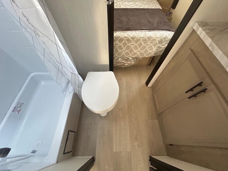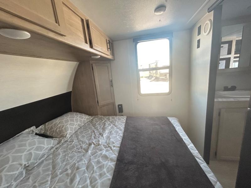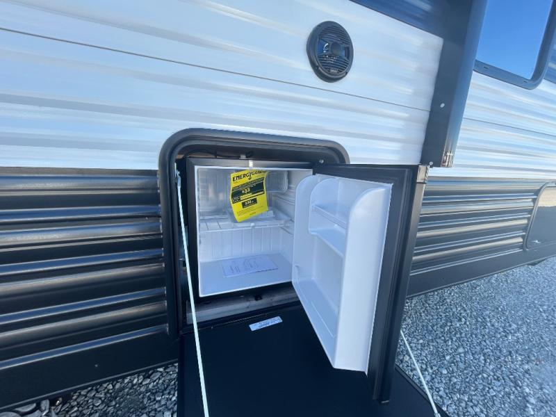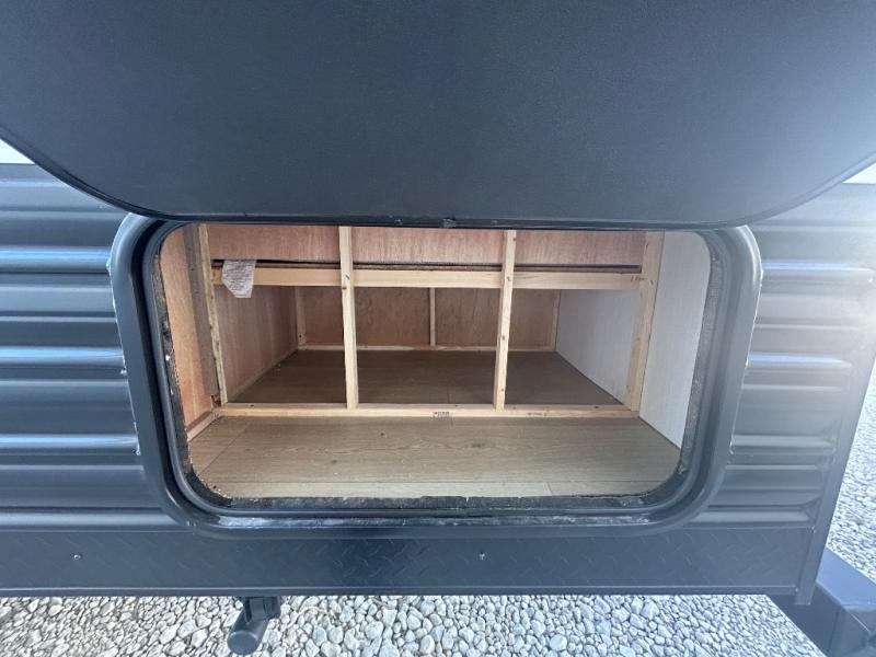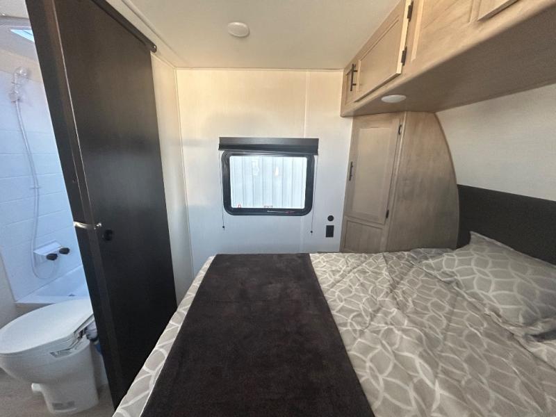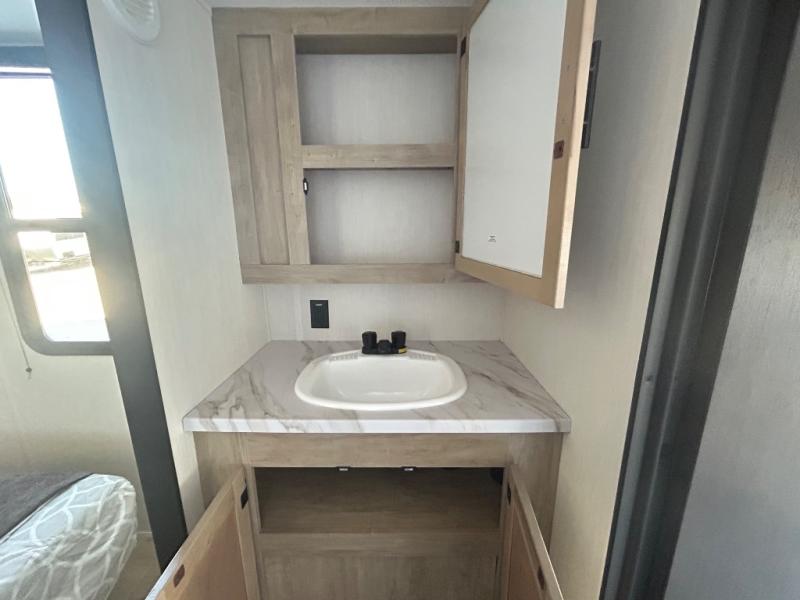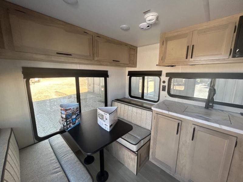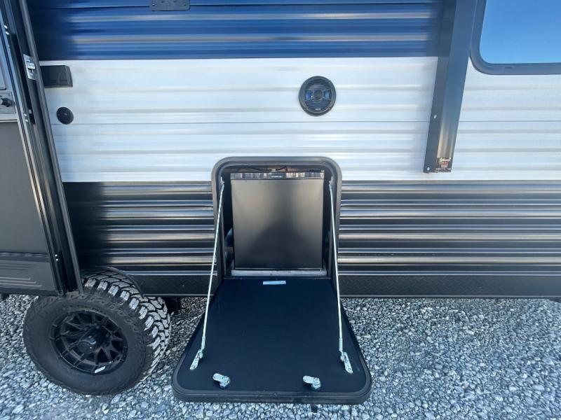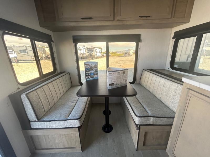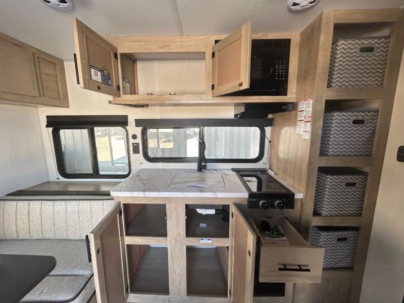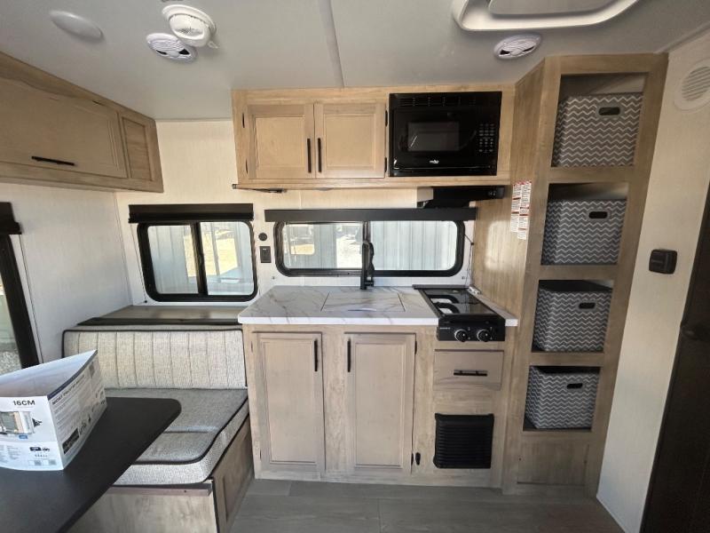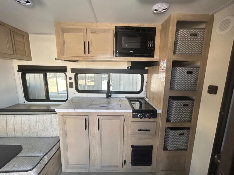 Convenient camping is found with this lightweight travel trailer! Once you arrive at your destination, put out the 15' power awning, then make lunch on the exterior mini kitchen. Inside, you can dine at the booth dinette, freshen up in the tub/shower, and sleep soundly on the queen bed in the master bedroom. And you're sure to find plenty of storage spaces both inside and outside, including a rear storage rack!