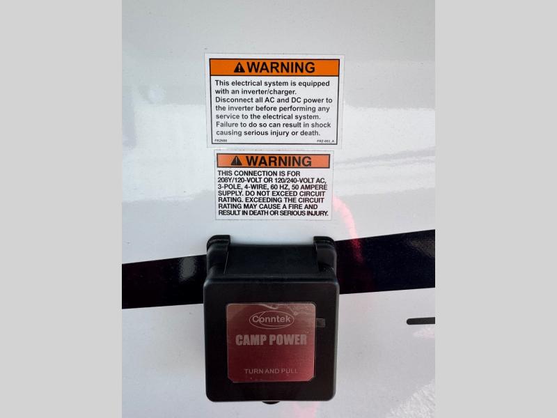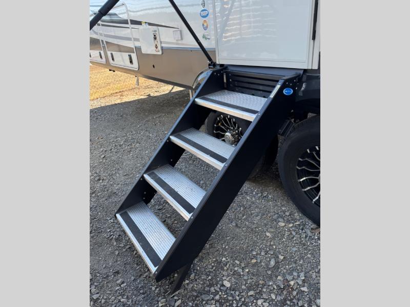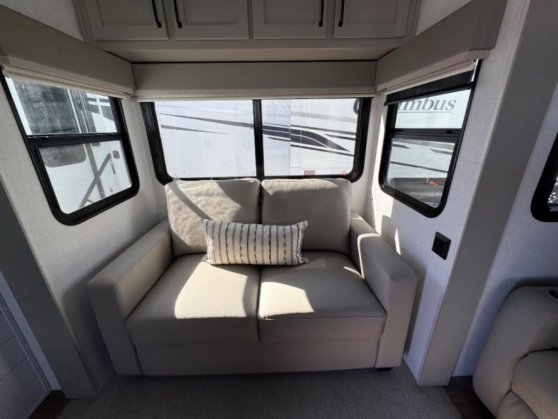 Experience a different camping life with residential furnishings and high end features in each one of these Palomino Columbus fifth wheels! The 101" wide body lets you walk around more throughout and the all-welded aluminum-frame superstructure has a snap-in ceiling molding to hold up through every adventure. Don't leave any of your gear behind either when you can easily store it in the climate controlled drop frame storage area. On the exterior, you'll find a heated utility convenience center, an outside sprayer to keep the dirt outside where it belongs, and magnetic compartment door holds to keep them from falling on you as you grab your items. Plus, there are some modern features that will really seal the deal like the Wi-Fi Booster with 4G LTE capability prep, upgraded true solid-surface countertops, power theater seating with USB charging, and a 260W solar panel for off-grid camping!