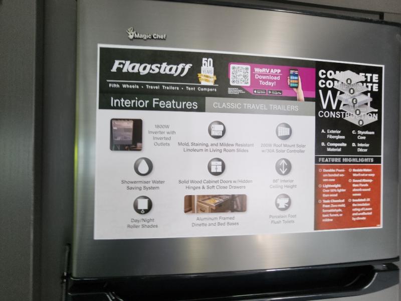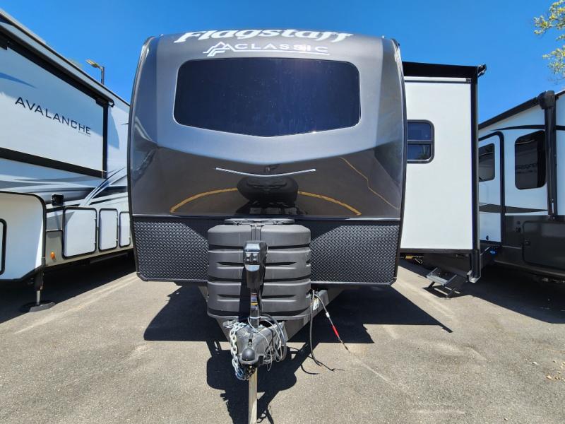 Each one of these Forest River Flagstaff Classic fifth wheels or travel trailers will be your home on wheels! Their quality craftsmanship and attention to detail shines through the surface-coated steel I-beam frame on fifth wheels, the enclosed underbelly, the radius roof with vaulted interior ceilings, and six-sided fully aluminum-framed floor, walls, and roof. Towing your unit will be easy with the torsion axle, Rubber-Ryde suspension, and nitrogen-filled Goodyear Endurance tires. You will even reduce your use of water with the Showermiser water saving system in the bathroom. A few other convenient features you will enjoy include a control panel with WeRV app control, a designer headboard and bedding, and an outside shower with hot and cold water. Come choose your favorite one today!