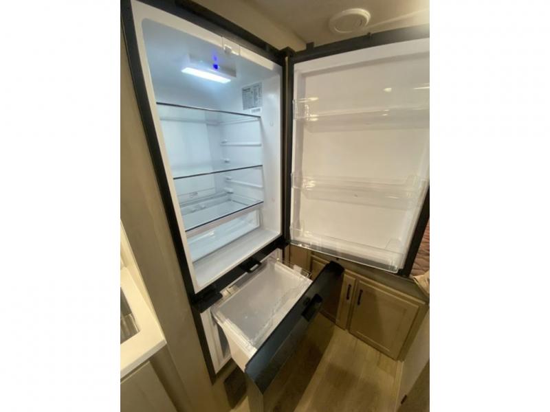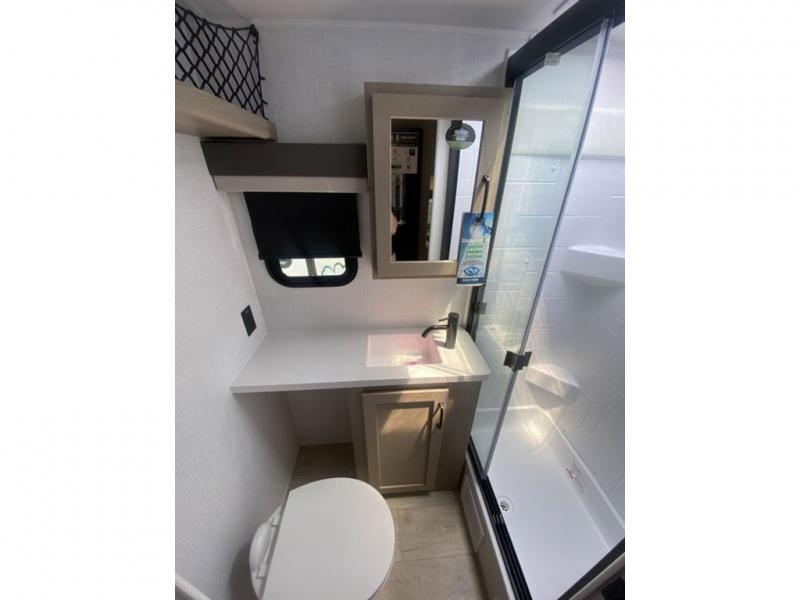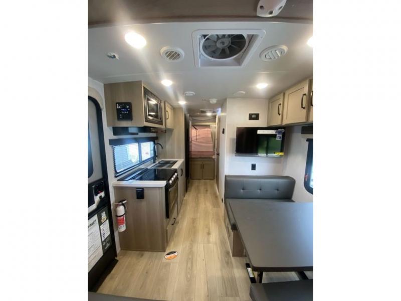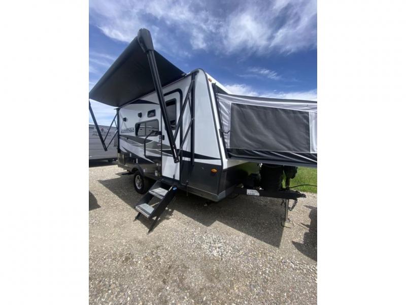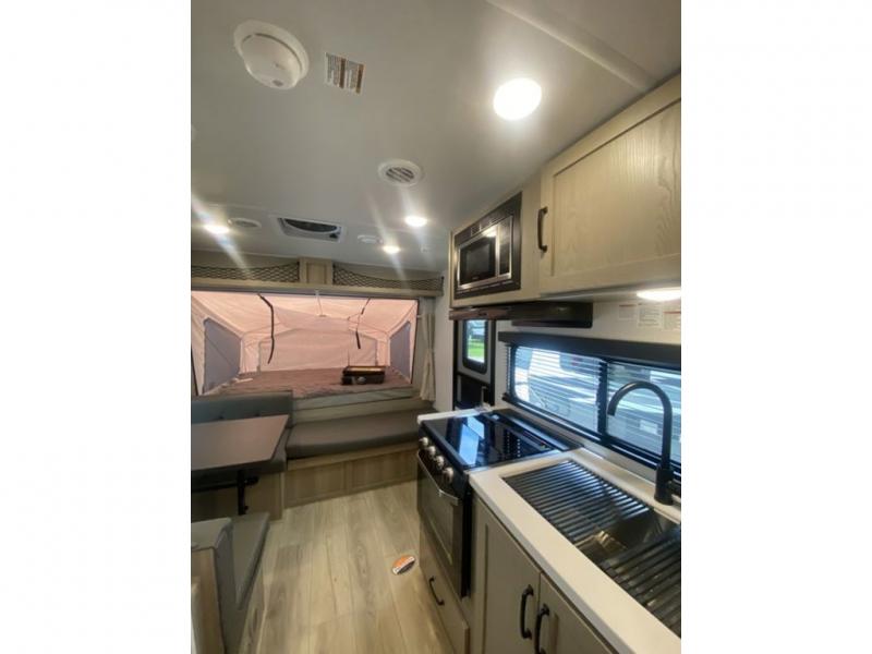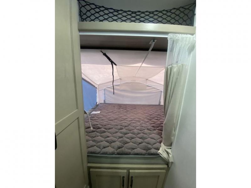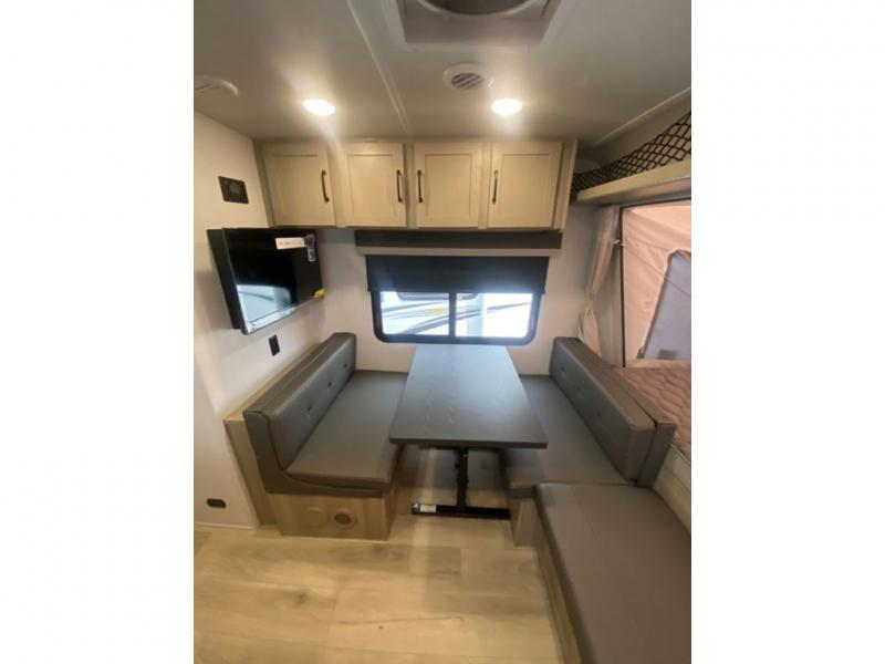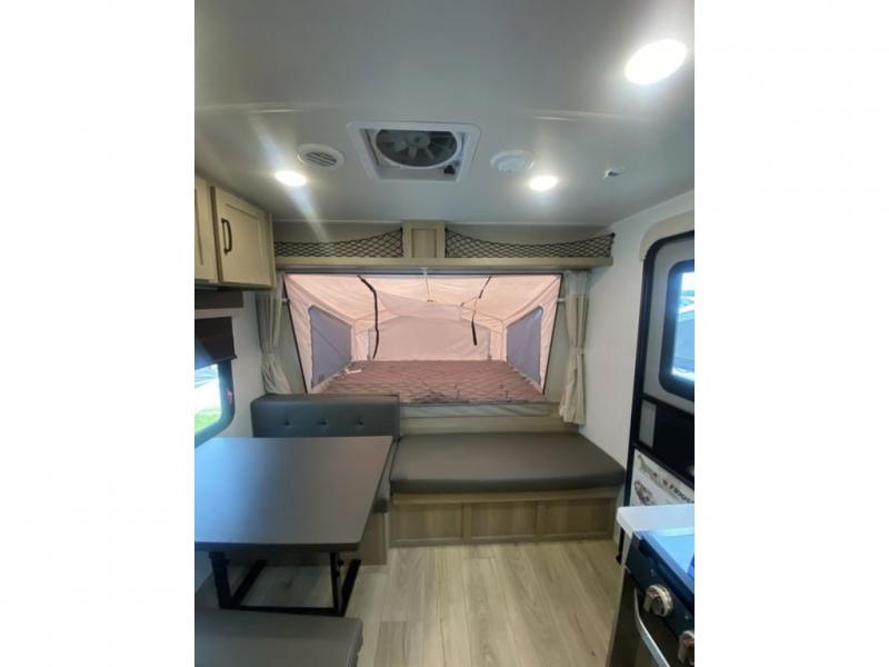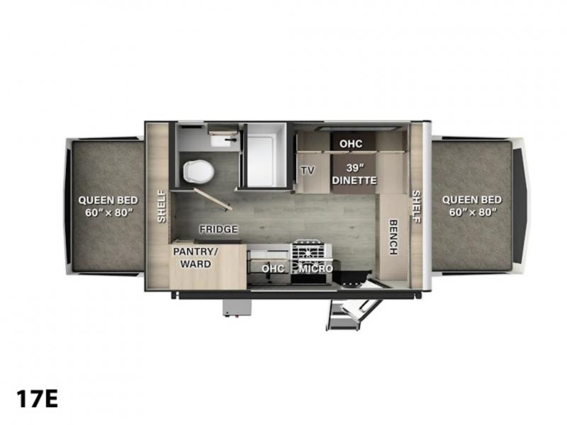This expandable is perfect for five since there are two queen tent end beds and a 39" booth dinette that can house an extra guest. A bench seat provides extra seating space, and there are shelves to keep your space tidy. You can make lunch on the three burner cooktop inside, or head outdoors to cook on the exterior griddle. There is also a 12' power awning that will give you shade as you visit with friends. Back inside, the full bath will let you freshen up each day, and the 12V smart entertainment TV will make it a movie night!