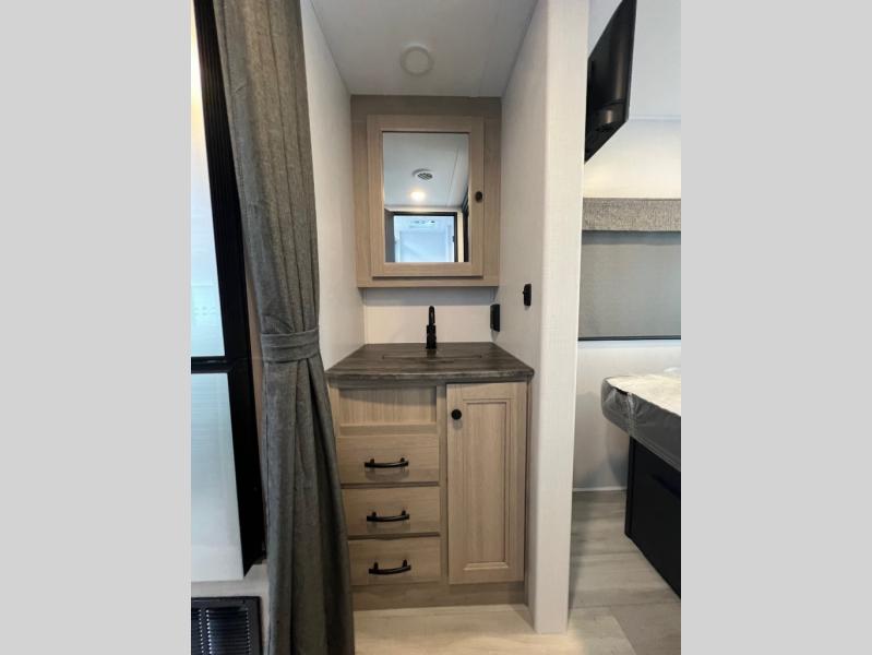 The included Forester Camping Package boasts a 15K AC with heat pump, heated remote exterior mirrors, back up and side view cameras with monitor, slide toppers, ultra leather swivel driver and passenger seating, slide toppers, aluminum running boards, Wingard 360+ antenna with Gateway WIFI, and LP quick connect. The roof mounted solar 12v charging system is also included.