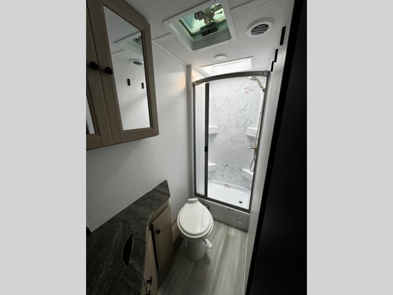With any Forester MBS Class C diesel motorhome by Forest River, you will have a diesel Mercedes chassis, a 10" touch screen with CarPlay/Android radio with USB and Bluetooth, plus a backup camera with side view cameras and 3-way monitor to easily maneuver the road. The Gateway 4G WiFi capability and Winegard Air 360+ digital antenna will help keep you connected, and the optional 190W charging system gives you the option to go off-grid if you choose. The spacious living area and well-appointed décor will make you feel at home, plus the bathroom's motion sensor light and oxygen-infused shower head with a flexible extension will provide the comfort and style you are wanting in your next RV!