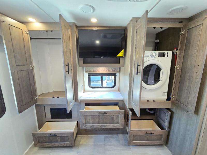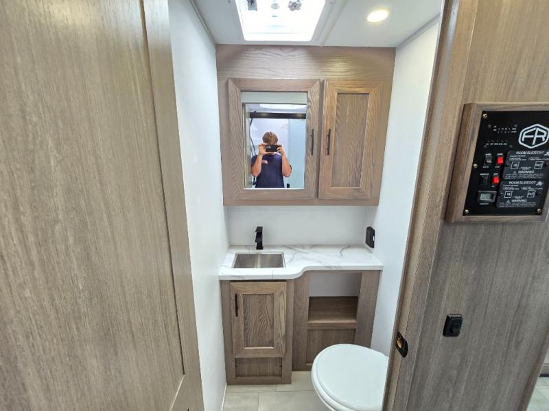 Whether you travel with your spouse, grandkids or friends, this FR3 Class A gas motorhome allows you to travel in style with plenty of additional sleeping choices from the power overhead bunk to the furniture once they are set up at night. You can dine at the wrap-around booth dinette, relax on the hide-a-bed sofa, and make full meals in the kitchen which also includes a residential microwave and countertop extension. The separated bathroom allows someone to take a shower while another freshens up with the private sink and toilet, or maybe you decide to close this area off within the bedroom. Every night you can sleep like a king while watching the 32" LED 12V TV in the bedroom, and maybe you decided to add the washer/dryer option to keep everything clean while on the road.