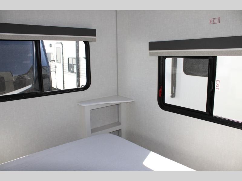 If you want to break free from the travel constraints of standard trailers, then you must choose the Forest River No Boundaries travel trailer because they are rugged and ready for adventure! These 18, 19, and 20 Series trailers are built with a laminated wall with aluminum construction and Azdel composite substrate for added durability. There is also a rugged tire and wheel package with a spare tire included, a fully enclosed underbelly, and a Cold Weather Package with 12V heated tank pads and forced air to help extend your camping season. A 15K A/C will provide comfort during the summer, and a Bluetooth speaker will let you listen to your favorite tunes while you're at the campground. Choose the optional Beast Mode Package for an additional 200W solar panel, 2,000W inverter, and Beast Mode independent suspension!