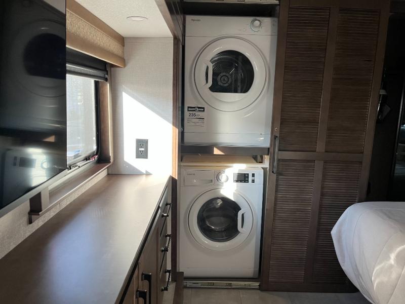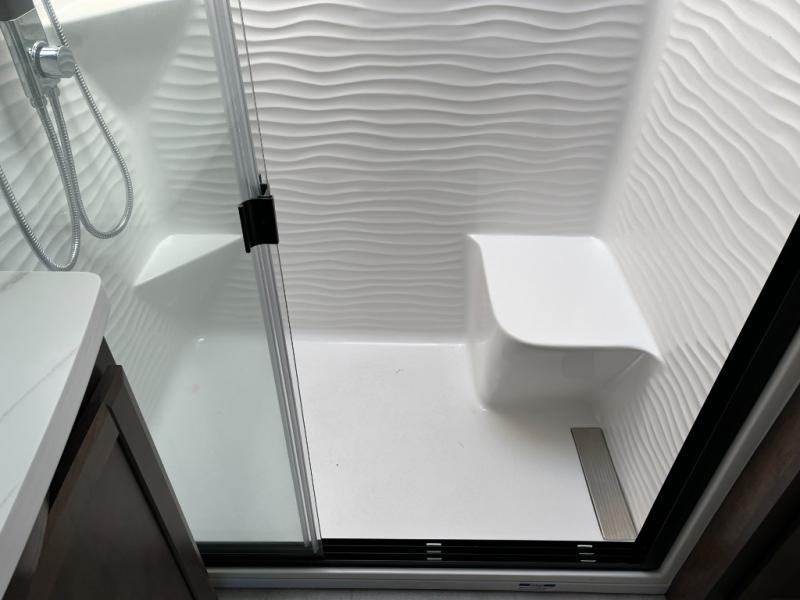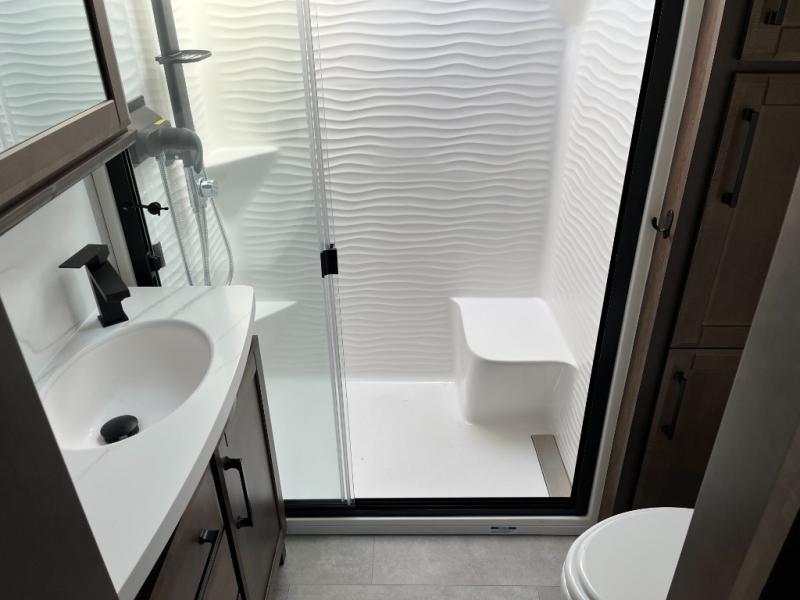 The full bathroom is thoughtfully designed with high-end fixtures, a spacious shower, a modern vanity, and ample storage. This well-appointed space enhances your everyday routine and brings residential-style convenience to life on your travels.