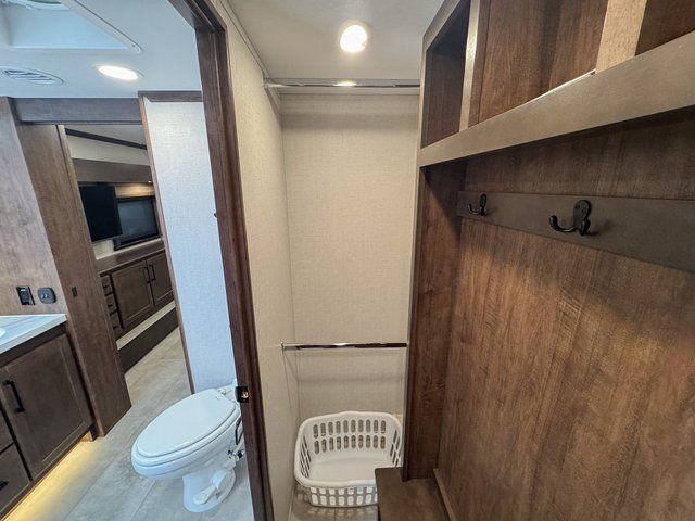 The Forest River RiverStone fifth wheels and toy haulers are luxurious units that have it all! You'll find an automatic six-point hydraulic level-up system to keep your unit in place, and there is preparation for a four-camera observation system. The TravlFi Journey XTR 4G/LTE router and WiFi extender will help you stay connected to the outside world, and you'll never have to overpack again since the Splendid “Astral” stackable washer and dryer will let you clean the small amount of clothes you've brought with you. Another high luxury is the Fischer Paykal dishwasher which will allow you to spend more time enjoying your camp life and less time cleaning up. Each unit is built with an LCI Road Armour suspension system, dual-pane frameless windows, a full docking station, a 200W solar panel, and a BMPro touch control system.