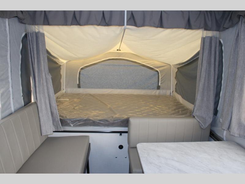 With any Rockwood Freedom Series by Forest River, you will enjoy added features to make each excursion one to remember. These folding pop-up campers feature a fiberglass laminated roof, wood plank flooring, and a Clay exterior with an alloy band. The leaf-spring axles, electric brakes, and balancing bead/nitrogen filled tires will make towing easier than ever, plus there are four stabilizer jacks with sand pads to help keep your unit secure. Each model also includes an awning with LED lighting outdoors, along with a one-piece screen door, two 20 lb. LP bottles, and a power roof lift to have you set up in no-time. Inside, the 15K under-bunk A/C and 20K BTU furnace will help keep you comfortable, and the Create-A-Breeze roof vent fan will keep the air moving!
