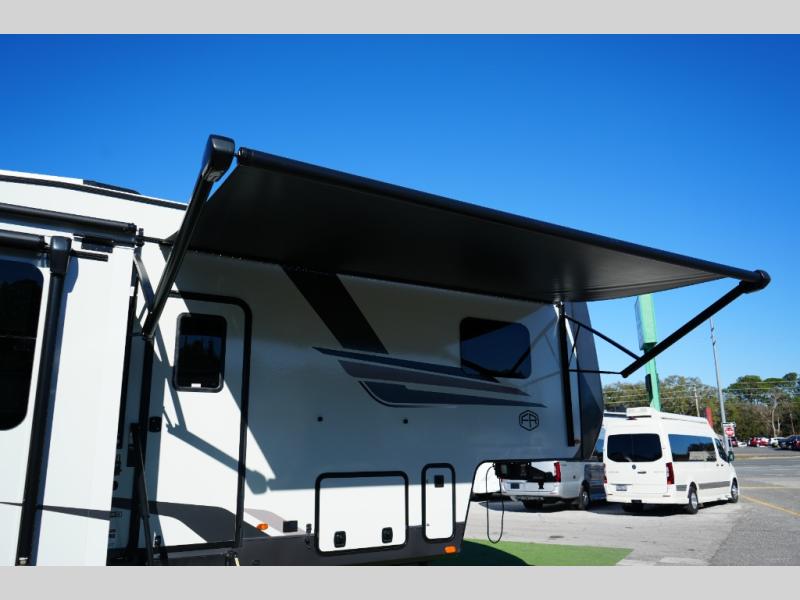 Features Fireplace, Outdoor Cooking Area, Hide-A-Bed Sofa, 200W Solar Panel, and Two Dual Awnings. Call Today! 352.787.7744
