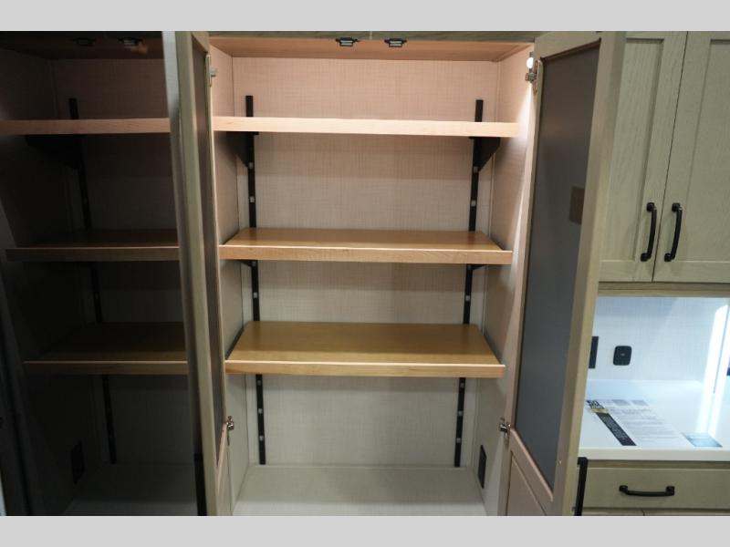 12V refrigerator and large pantry for ample food storage
