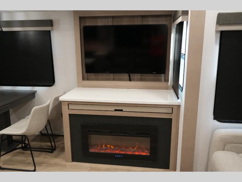 Smart TV and fireplace add cozy entertainment options