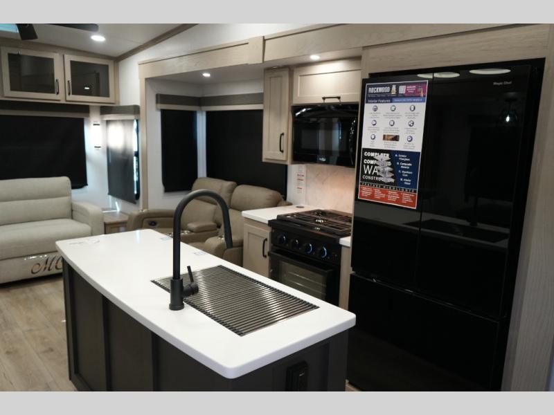 Experience the perfect combination of luxury, functionality, and adventure with the Forest River Rockwood Signature R331RL fifth wheel. Designed for comfort and convenience, this unit offers a smart layout with dual opposing slides that create a spacious main living and kitchen area.