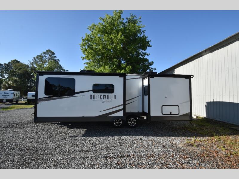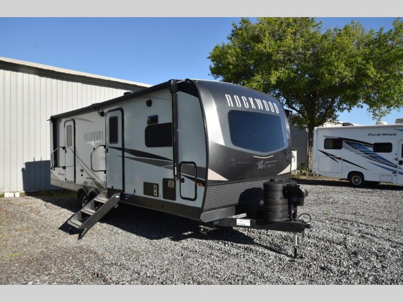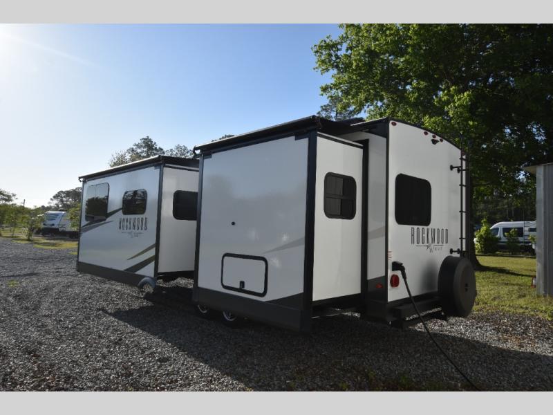 Each Rockwood Ultra Lite travel trailer by Forest River includes superior construction with a high gloss front cap, laminated white fiberglass sidewalls, and tinted frameless windows for a sleek look. The torsion axle, Rubber-Ryde suspension will make towing smooth and hassle-free, along with the nitrogen filled, Goodyear Endurance tires and the tire pressure monitor system. Interior comforts include designer kitchen backsplash, solid wood cabinet doors with hidden hinges, and night roller shades to name a few. Choose a Rockwood Ultra Lite travel trailer today!