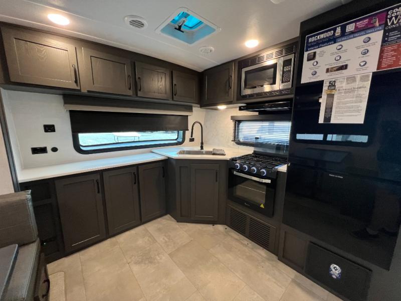 Each Rockwood Ultra Lite travel trailer by Forest River includes superior construction with a high gloss front cap, laminated white fiberglass sidewalls, and tinted frameless windows for a sleek look. The torsion axle, Rubber-Ryde suspension will make towing smooth and hassle-free, along with the nitrogen filled, Goodyear Endurance tires and the tire pressure monitor system. Interior comforts include designer kitchen backsplash, solid wood cabinet doors with hidden hinges, and night roller shades to name a few. Choose a Rockwood Ultra Lite travel trailer today!
