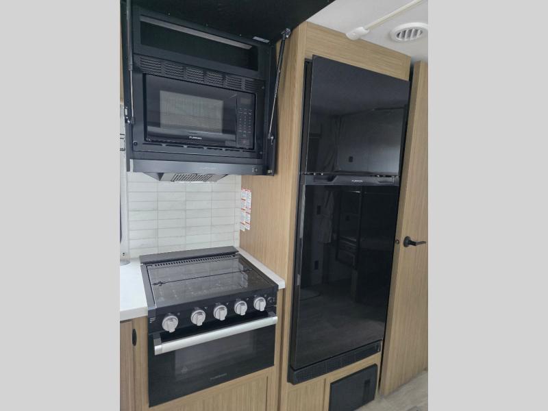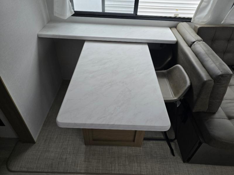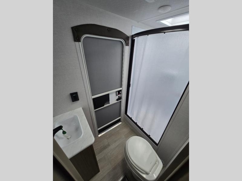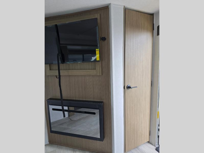 As you get away for the weekend to enjoy nature's beauty, you'll be so glad that you chose to bring this Salem travel trailer along! The full kitchen with its cooktop, microwave and walk-in pantry will allow you to prep meals whenever it is convenient for you, and the large slide that contains the functional Versa Flex table with chairs provides a place to dine or work. There is also an L-shaped sofa to relax on across from the fireplace! Your kids will be able to invite a friend or two because of the double-size bunks that are in the back, and since these bunks are right next to the full bathroom with a walk-in shower, your kids won't have to search far in the middle of the night.