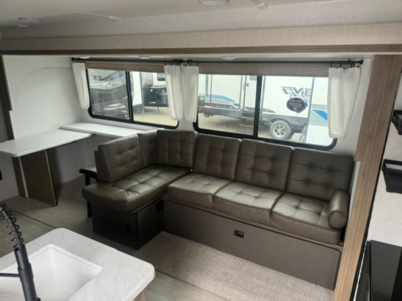 As you get away for the weekend to enjoy nature's beauty, you'll be so glad that you chose to bring this Salem travel trailer along! The full kitchen with its cooktop, overhead microwave oven, oversized refrigerator, and walk-in pantry will allow you to prep meals whenever it is convenient for you. The large slide that contains the L-shaped versa lounge and Versa Flex table will deliver extra space to the interior so that you don't feel cramped. Your kids will be able to invite a friend or two because of the double-size bunks that are in the back, and since these bunks are right next to the full bathroom with a walk-in shower, your kids won't have to go far in the middle of the night. You might also like to add the optional exterior kitchen if you enjoy cooking outdoors!