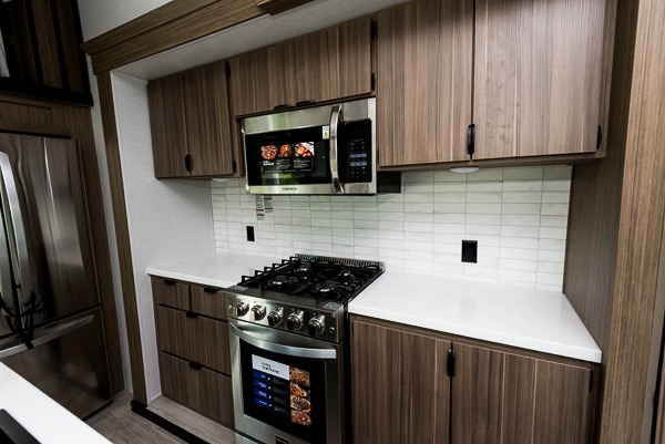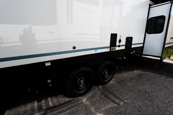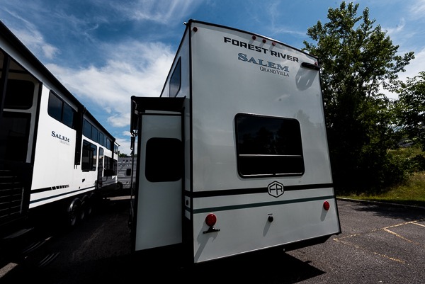 With any Salem Grand Villa destination trailer by Forest River, you can call home wherever you park it! There is a heated and enclosed Accessibelly for added protection in all seasons, LED "Blade Lighting" under the awning, Lippert On-The-Go ladder prep, plus many more exterior conveniences. Elegant curtain rods and curtains will have you feeling right at home, along with stainless steel kitchen appliances, stylish roller shades, and enhanced floating shelves for added storage. Each model includes a central vacuum with a sweep attachment to help keep your space tidy, a 60k on-demand tankless water heater for endless hot showers, a JBL 3-Zone media center, plus available options to further customize your trailer.