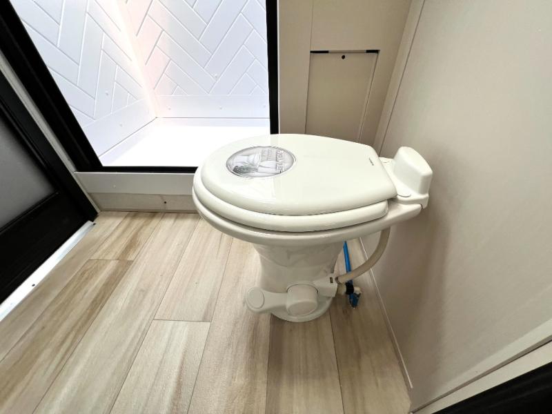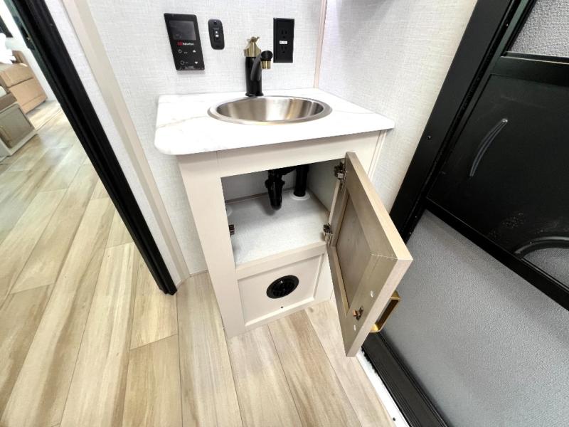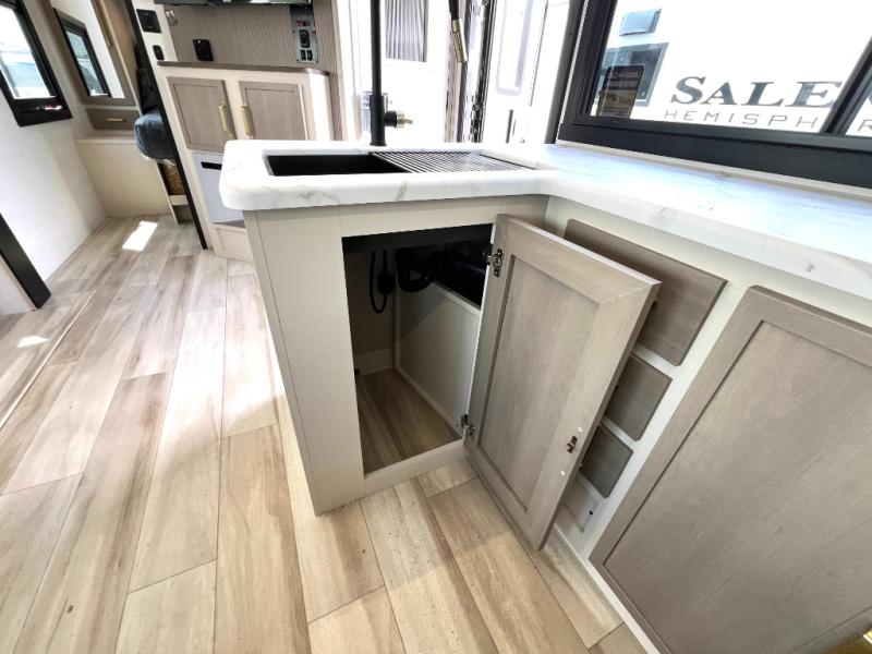 With any Salem Hemisphere Hyper-Lyte travel trailer by Forest River, you will appreciate a wide stance axle and Maxxis radial tires for smooth towing, plus laminated "Aluma Frame" sidewalls and floor for added durability. There are also square windows with built-in shades with reflecting thermal-foil backing to help keep your trailer cool during the summer. The 2" accessory hitch receiver will allow you to bring along more camp gear and the tankless water heater is a feature you won't want to camp without! Inside, you'll find Temple Cherry cabinetry, wood door casings in place of plastic, a residential single bowl undermount sink, and many more comforts. Outside, your furry friend will be happy with the shaded pet tether and security hook, and there is even an outside shower with hot and cold water to fill the dogs water bowl and wash off hiking boots!