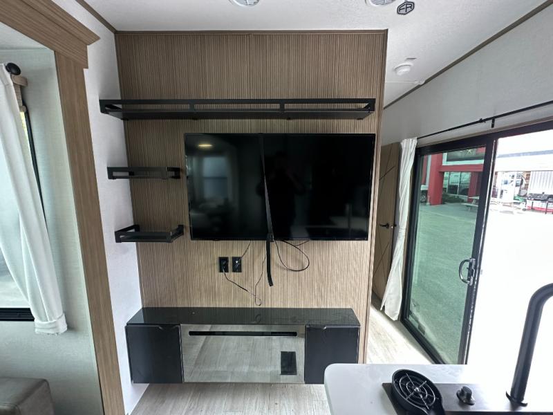 The Forest River Salem Villa Series destination trailer offers you an excellent space to relax in and rejuvenate your adventurous spirit! The 7' interior height is going to provide you with an open and spacious living area, and the heated and enclosed accessi-belly will protect your trailer from the elements. The Salem Villa Series comes loaded with upgraded designer furniture, a modern headboard redesign, stainless steel kitchen appliances, adjustable texture roller shades , and central vacuum with sweep attachment for a spotless home. There is also a few new features, including JBL speakers in the interior/exterior, a 4K blade lighting, a 60K tankless water heater, and more comforts!